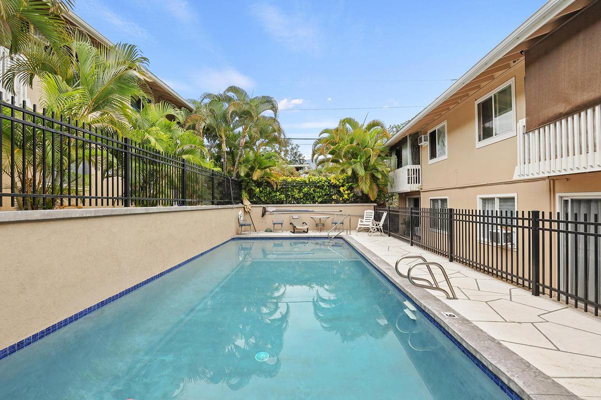 An excellent investment awaits in the vibrant heart of Kailua-Kona, presenting an ideal opportunity for long-term rental (31 days) or as your primary residence. This fee-simple, furnished one-bedroom, one-bath condo on the second floor promises not only comfort and convenience but also a budget-friendly choice.Recent renovations include complete kitchen remodel, new modern bathroom, and flooring. Kona Polynesia is very close to shops, restaurants, the ocean, Alii Drive and the Kona Pier and the Safeway Shopping Center. Easy to live in this prime location, with a recently refurbished pool and deck, surrounded by tropical landscaping. Seize the opportunity to own this well-positioned gem. • New paint and trim • New engineered wood floor • Walk-in Shower •Quartz Countertop in kitchen •Live edge acacia bar counter top •Insulated Ceiling •New Recessed Lighting •Coin operated laundry in complex • Pool in complex •Fee simple ownership, not leasehold
