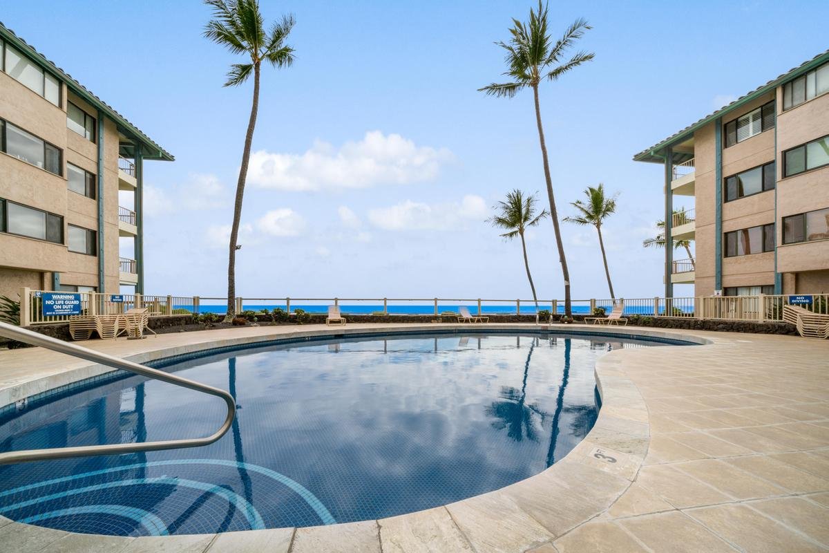 Kona Reef is a well-maintained oceanfront complex featuring resort-style amenities, including an ocean-view pool, spa, BBQ pavilion, elevator access, and EV charging available. Located directly next to Honl’s Beach, and just a short walk to the restaurants, shops, and downtown of historic Kailua Village, everything you need is close by, yet the setting remains peaceful and private.