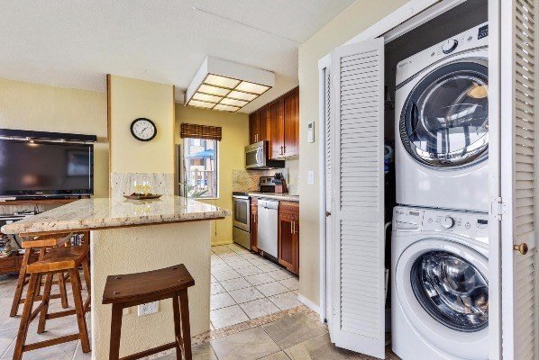 Completely Remodeled First Floor Corner End Unit. Direct Oceanfront. Owners installed new zoned split system AC. Quiet AC that cools the bedroom or the living room or both. Kitchen has African Mahogany Cabinets, Bar Seating, Expansive Granite Counters, Back splash and Stainless Steel Appliances. Full Size Washer and Dryer. One of a FEW condos in this complex with a NEW Split System Air Conditioner. Ceramic Tile Throughout. Over sized Master Bedroom with King Bed and large window. Two Newly Remodeled Bathrooms. Sold Turnkey Furnished with Tropical Decor and completely set up for a vacation rental. All Furniture. Appliances and Electronics are new in last year. Successful Vacation Rental VRBO #67713. We have actual rental history records for the unit. As of 8/1/18 329 days are booked for 2018! Complex has VERY REASONABLE MONTHLY FEES OF $567.00 A MONTH for oceanfront project. Unit can be accessed without steps. Oceanfront Pool, Spa, & BBQ Facilities. Concrete Building with Elevators & Underground AND ABOVE GROUND PARKING Parking. Popular Vacation Rental Complex with Onsite Management If needed. Located Oceanfront, Adjacent to Honl's Beach Park. Short block Walk to Town, Restaurants, the Pier, and Shopping. : One of Two Units in the Complex having 1 Bedroom and 2 Baths. Unit can be shown when vacant or between check in and checkout. Driving Directions: Just South of Town, Oceanfront along Alii Drive directly past Royal Kona Resort. Noted buildings for their Blue Tile roof. ONE OF ONLY 2 UNITS THAT HAVE LARGE LIVING SPACE 2 FULL BATHROOMS AND WINDOWS GALORE!