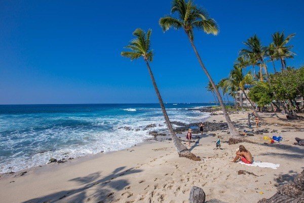 The Kona Reef Resort is an oceanfront community that sits next to Honl’s Beach on its south side.