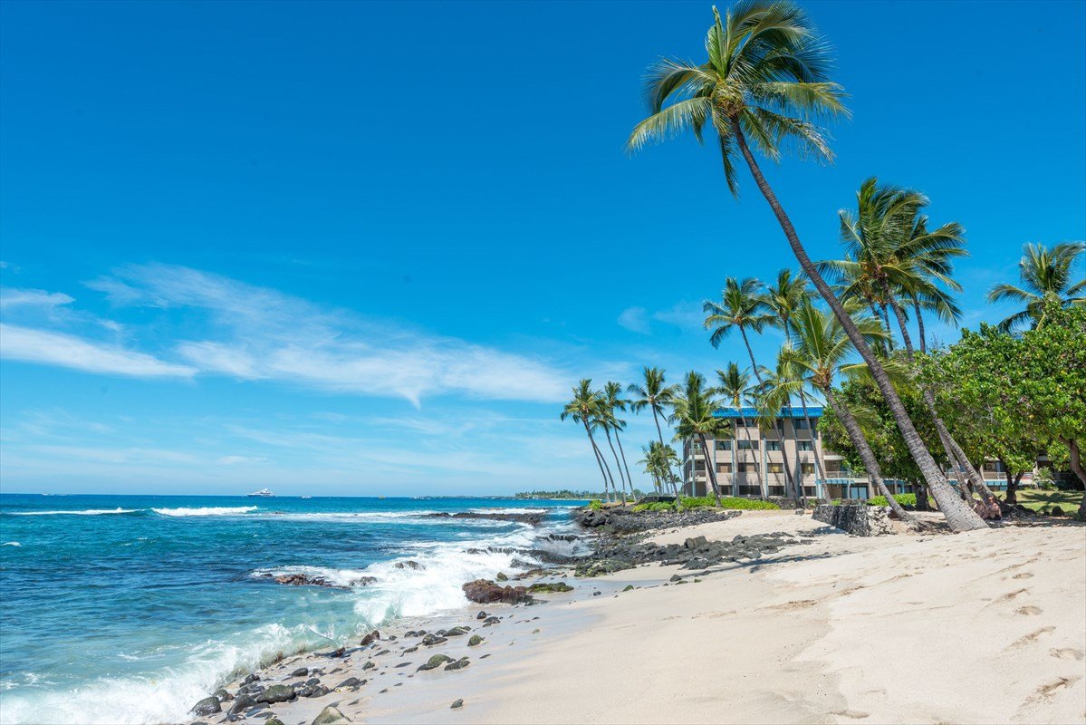 The Kona Reef Resort is an oceanfront community that sits next to Honl’s Beach on its south side.