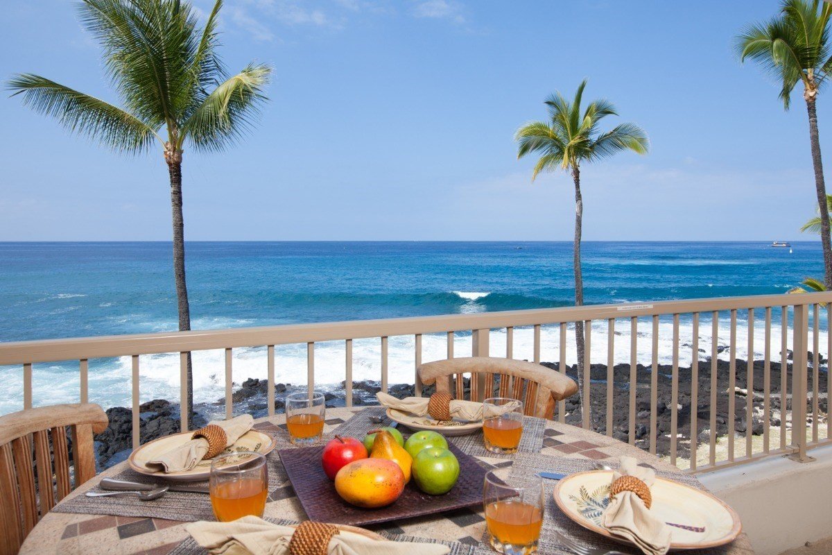 This is a nicely upgraded oceanfront condo at Kona Reef. It is one of the few that has air conditioning throughout the unit. It has a good rental history (other than the pandemic). All furniture and appliances are included for turnkey vacation rental operation. Nice cabinetry, quality appliances, terrific view and future rentals included. Seller requests existing future rentals be honored.