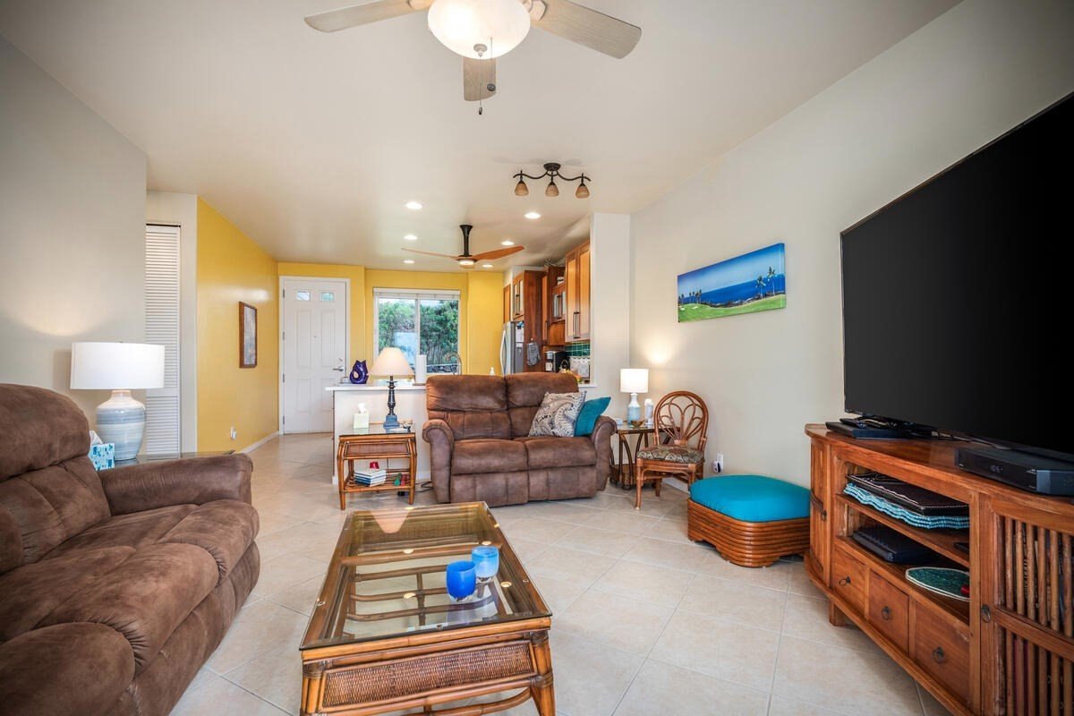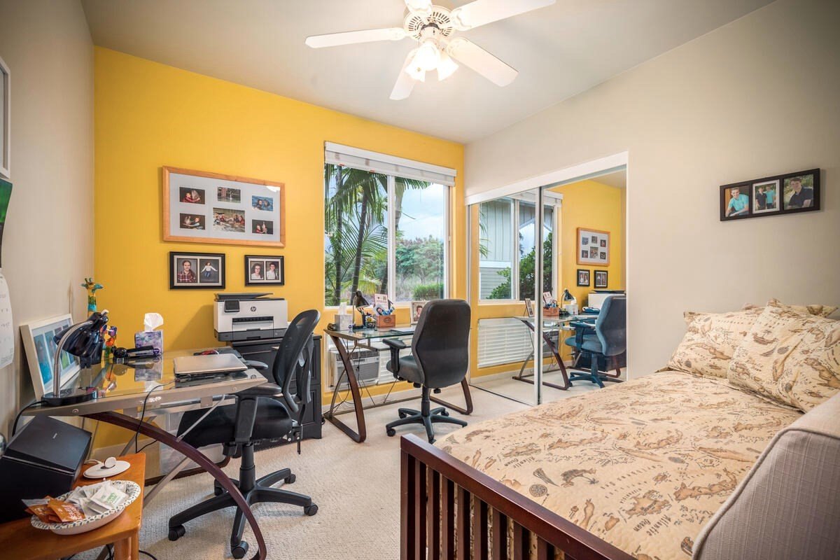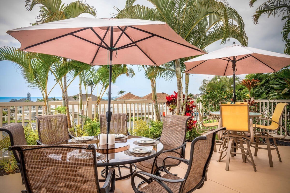 A modern 3 bedroom 2 bath ground level condo with ocean view, lanai and fenced yard. Located in one of Kailua Kona's most desirable gated condominium complexes. And within walking distance to Kailua Village's dining and shopping as well as Honl's beach. Kona Sea Ridge's lush tropical landscaping is meticulously maintained as is the pool, spa, workout room and BBQ area. Short term vacation rentals under 30 days are not allowed here, creating a peaceful residential community.View virtual tour at: https://tours.spaces808.com/1785405 The spacious kitchen has been upgraded to include beautiful cabinetry with solid quartz counter tops. The bathrooms have also been upgraded with the same counters and cabinets as the kitchen. The master bath has a walk-in shower, and a bathtub is in the guest bathroom. 9' ceilings through out. The entire unit is bright and airy with good cross breezes and ceiling fans. BBQ and entertain in your own back yard. 2 Parking stallsOPEN HOUSE SATURDAY 3/6/21 AND SUNDAY 3/7/21 9AM UNTIL 2PM