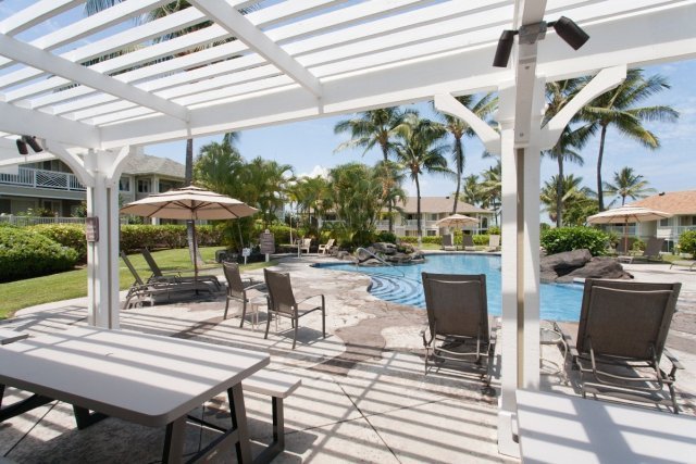 Kona Sea Ridge’s gated community fronts onto the inland side of Alii Dr, the condos nearest to the entrance sitting about 200 yards from the Pacific.