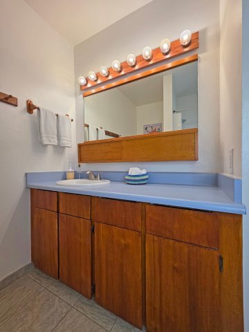 This 3 bedroom 2 bath condo has been well cared for, and is ready for you to move right in! V21 features updated carpet, granite counter-tops, recessed lighting, vaulted ceilings in the living and kitchen areas, 2 air conditioning units, an open floor plan connecting the kitchen and the living area, tasteful furnishings, and is situated well to catch the trade winds. Located upstairs, this unit even has an ocean view! The main bedroom has its own bathroom and a built in AC unit. V21 has 2 deeded parking stalls, with one covered. Solar powered attic fans installed by the association help keep the upstairs units cooler.Kona Sea Ridge is known for its low maintenance fees and strong management. Minimum rental period is 30 days. Kona Sea Ridge is a gated residential condo complex built in 2001 and is located on popular Alii Drive just 1/2 mile from the heart of Kona with many shopping and dining options. The community center has 2 gas grills, fitness center, men’s and women’s bathrooms, and tile swimming pool with a waterfall and hot tub.
