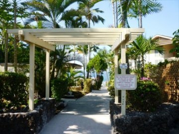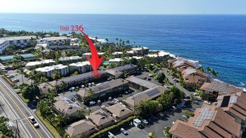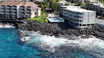 Kona Sea Ridge’s gated community fronts onto the inland side of Alii Dr, the condos nearest to the entrance sitting about 200 yards from the Pacific.