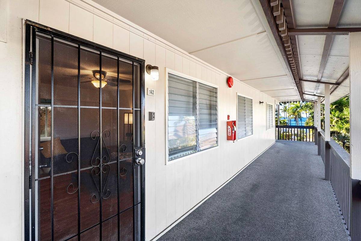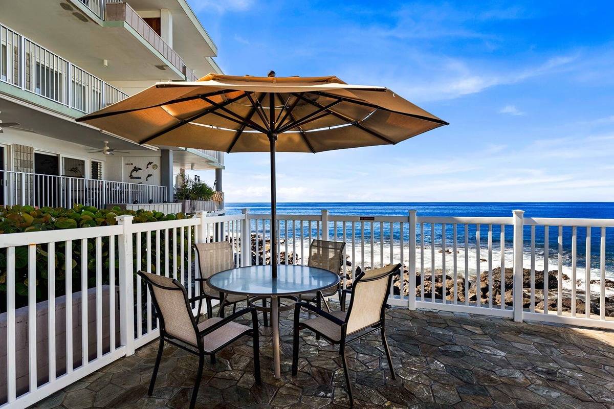 Welcome to Kona Shores 142. Offering a rare opportunity to own a furnished fee simple condo nestled on the oceanfront in the heart of Kailua-Kona. Located makai of Ali'i drive a short distance to Kailua-Kona's central shopping, dining and entertainment district. Kona Shores is a well maintained condominium community with a lovely pool perched on the rocky shoreline. Also shared among residents in an outdoor grill and gathering area just a short jaunt from your front door. Unit 142 has both stair and ground level access.