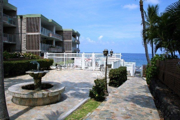 The Kona Shores is an almost-oceanfront property, one neighboring property between it and the shoreline. Shores condos nearest to the Pacific are only about 100 yards from the swells. The unusual shape of its lot includes a ‘handle’ that extends to the ocean and holds the complex’s recreation area, including a pool and sundeck rig... Read more