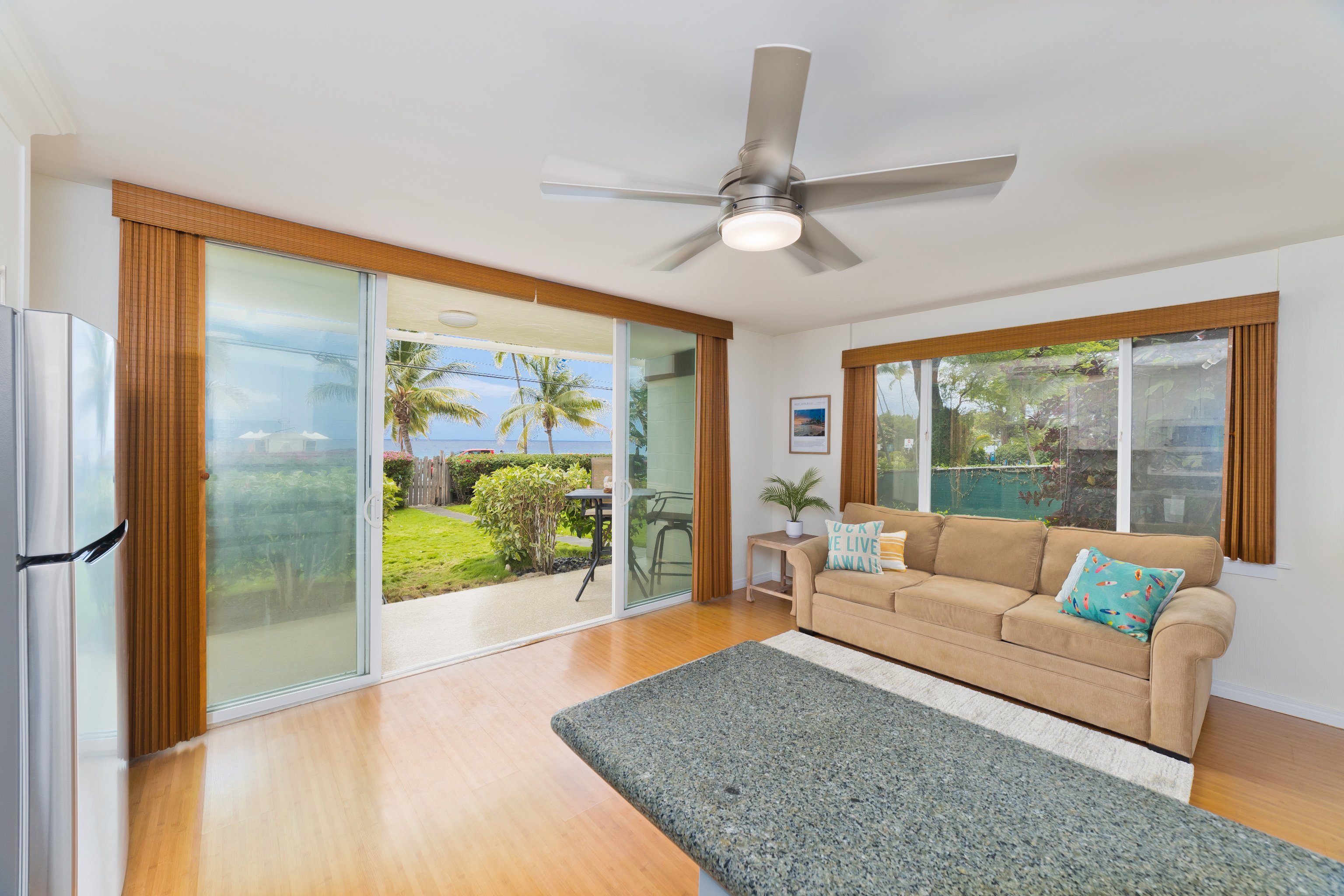 Across from Magic Sands Beach — ( Laʻaloa Beach Park ) This beautifully renovated 1-bedroom condo at Kona White Sands is a rare find in one of Kona’s most iconic beach locations. Rarely available ground-floor, corner unit in a boutique 10-unit complex, ideally located on Alii Drive—directly across from Magic Sands Beach, one of the only true white sand beaches in town.The unit was thoughtfully remodeled and is move-in ready. Appliances are either brand new or recently upgraded, and the layout maximizes space and natural light.Monthly AOAO dues are $586 and cover nearly everything: electricity, water, sewer, propane, trash, pest control, and exterior maintenance. Laundry and reserved parking are just outside your door.Zoning matters here—this complex is zoned V-1.25 (Resort Hotel), which allows for short-term vacation rentals/hotels. While this unit has a strong rental history in the past, it’s currently not STVR-registered to take advantage of lower property taxes. Reapplying would be straightforward if the next owner wants to resume vacation rental operations.Whether you’re searching for a beachside home, long-term investment, or future vacation retreat, this unit delivers rare value in a prime Kona location. Opportunities like this don’t come along often—especially this close to the sand.