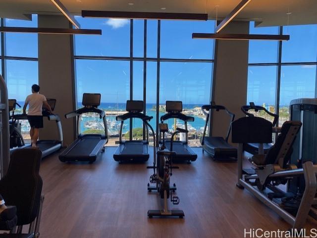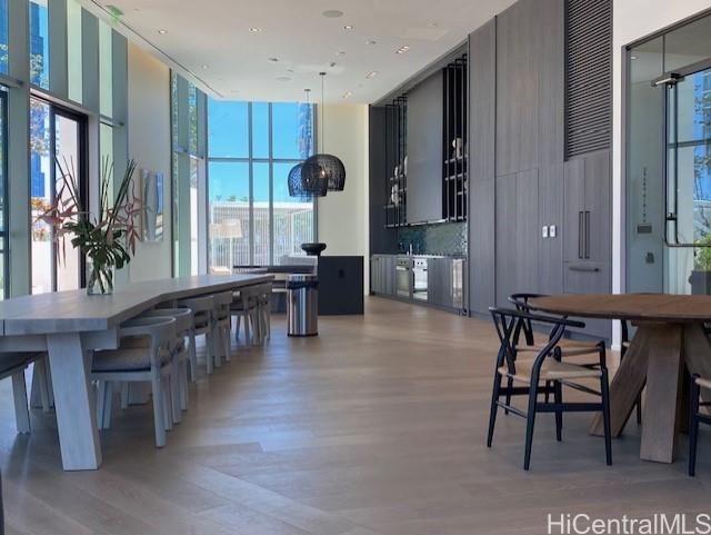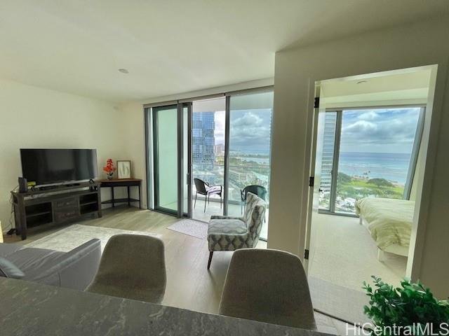 Ko'ula is one of the most stunning buildings in Ka'ka'ako, standing sleek, bright, and beautifully white against the skyline. This highly desirable “06” unit features a flexible dine-in area that can easily double as a home office, offering versatility for modern living. This one-bedroom residence faces Diamond Head and offers sweeping ocean views from both the living room and bedroom. The bedroom includes a small walk-in closet, while the kitchen is outfitted with premium Miele appliances, combining style with top-tier functionality. Ko'ula’s amenities are truly top-notch. Residents enjoy a Grand Dining Room and Private Dining spaces perfect for entertaining, along with a Sunset Lounge and expansive Grand Lanai. The pool deck features cabanas with BBQs, plus additional individual BBQ areas near the outdoor fitness The fitness facilities are exceptionally spacious and include an indoor gym, private treatment room, and sauna—designed for both wellness and relaxation. This is refined island living at its best, blending thoughtful design, luxury amenities, and breathtaking views in one of Honolulu’s most sought-after neighborhoods. Shopping, Restaurants, Banking are minutes away!