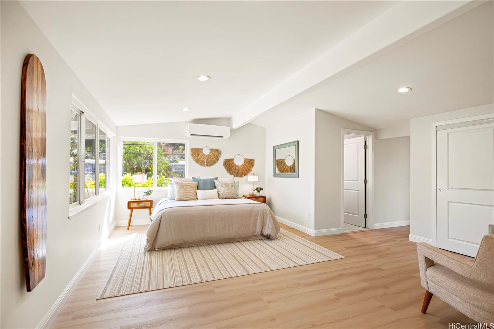 Coveted Country Club Knolls, just 8 houses from Kailua Beach Park. This beautifully updated home offers unmatched flexibility, modern upgrades, and an incredible beachside lifestyle. The main level features 4 bedrooms, 3 bathrooms, two generous living areas, and a refreshed chef’s-dream kitchen overlooking a spacious dining and living area. Oversized stacking doors open to a lush backyard, perfect for parties, play, or quiet relaxation.Designer touches, fresh paint, updated lighting, new flooring, and a bright, breezy layout create a peaceful, modern feel throughout. Vaulted ceilings, split ACs, & owned PV with Net Metering add long-term comfort and savings. Upstairs, a fully updated 1-bd/bth/liv/kitchenette w/ its own private entrance provides exceptional flexibility for multigenerational living, guests, or rental income.Live the ultimate Kailua lifestyle: stroll to Kailua Beach Park, Lanikai, Buzz’s, and Kalapawai, or launch your boat at the nearby ramp. With Ka‘ohao Charter School moments away and Mid-Pac Country Club a quick golf cart ride from home, this rare home blends comfort, location, and coastal living in one of Kailua’s most sought-after neighborhoods.