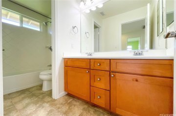 Discover the perfect oasis in this charming 4 bedroom, 2.5 bath single-family home nestled in the desirable Ocean Pointe community of Ewa Beach. Boasting a versatile bonus den downstairs and a generous backyard, this home offers ample space for comfortable living and entertaining. Enjoy the coolness year round with an energy efficient Air Conditioner unit replaced in 2022 which keeps the electricity cost to a minimum.The open-concept layout features a modern kitchen with sleek appliances and ample counter space, flowing seamlessly into a bright living and dining area. The primary suite provides a peaceful retreat with an en-suite bathroom with a soaking tub and shower as well as a walk-in closet. Three additional bedrooms and the bonus den offer flexibility for a home office, playroom, or guest accommodations.Utilize a 2-car garage with potential for a third parking and a large backyard perfect for outdoor gatherings. Situated in the heart of Ewa Beach, the home is just minutes away from beautiful beaches, shopping, golf courses, and dining making it ideal for those seeking a vibrant and convenient lifestyle. Schedule a private showing today!
