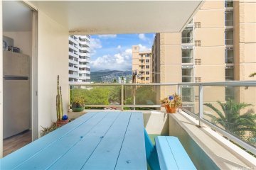 Beautiful ocean & mountain views from your corner, high-floor unit. 2 new A/Cs will be installed on recently upgraded windows. Pet friendly, this boutique property is quietly tucked away < 5 blocks from the beach. Maintenance fees currently include electric & cable, while parking is by waitlist for owner occupants. Gorgeous views from sundeck; peek-a-boo Diamond Head view from Lanai; storage area for bikes & surfboards. Next door unit may be available for larger, contiguous floor plan upon inquiry & interest. Special Assessment of ~$37k has ALREADY BEEN PAID by Owner; no need to pay additional thousands of dollars over the next 17 years. Please use As-Is Addendum & consider TG, Jeff Lee (Kahala) for escrow. Unit is vacant and easy to see.