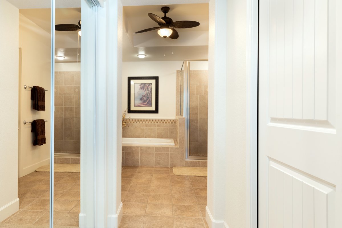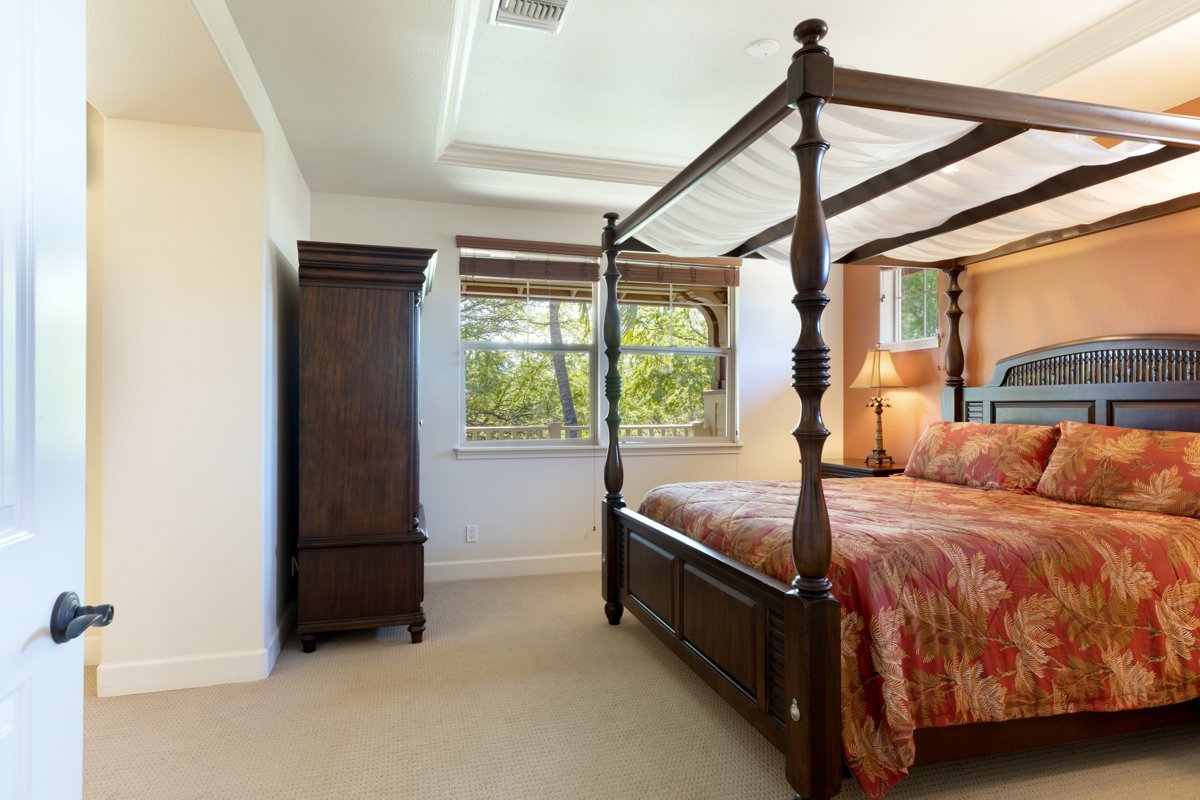 On the second floor you'll discover two generously sized bedrooms. The primary bedroom exudes comfort and functionality, featuring a versatile den area ideal for a home office or additional sleeping space. A private lanai provides a secluded spot for unwinding and soaking in the serene views. The primary ensuite offers a luxurious retreat with a jacuzzi tub, walk-in shower, and double vanity, ensuring a spa-like experience within the comforts of home.