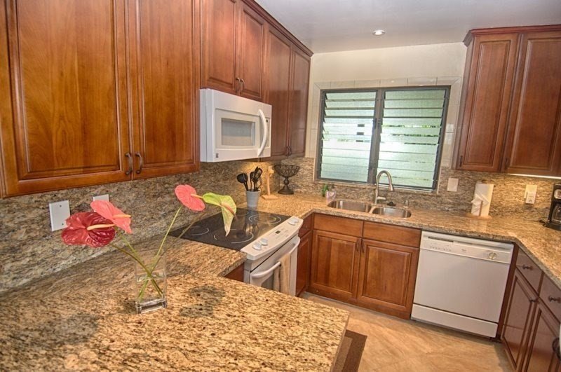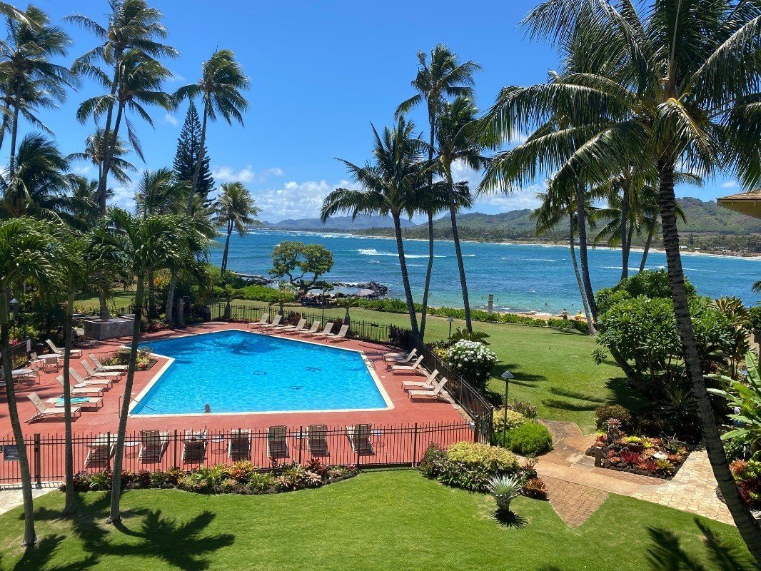 You will not find a better view and a better value than this third floor condo with a commanding view of Wailua Bay on Kauai. The condo is tastefully appointed and has all the comfort of a luxury hotel. With a master bedroom with a lanai that faces the water, wake up or retire to the sounds of the ocean waves crashing on our beautiful beach. Sunrise brings you beautiful colors in your bedroom and living/ dining area. Unique to most condos on the island, you can have this beautiful condo at a real value. Lae nani is in a convenient spot on the island, 30 min. or less to either North or South shores and with many fine restaurants and shopping close. Our condo is oceanfront with a great beach for swimming or snorkeling. Lava rock protected pool for the little ones.