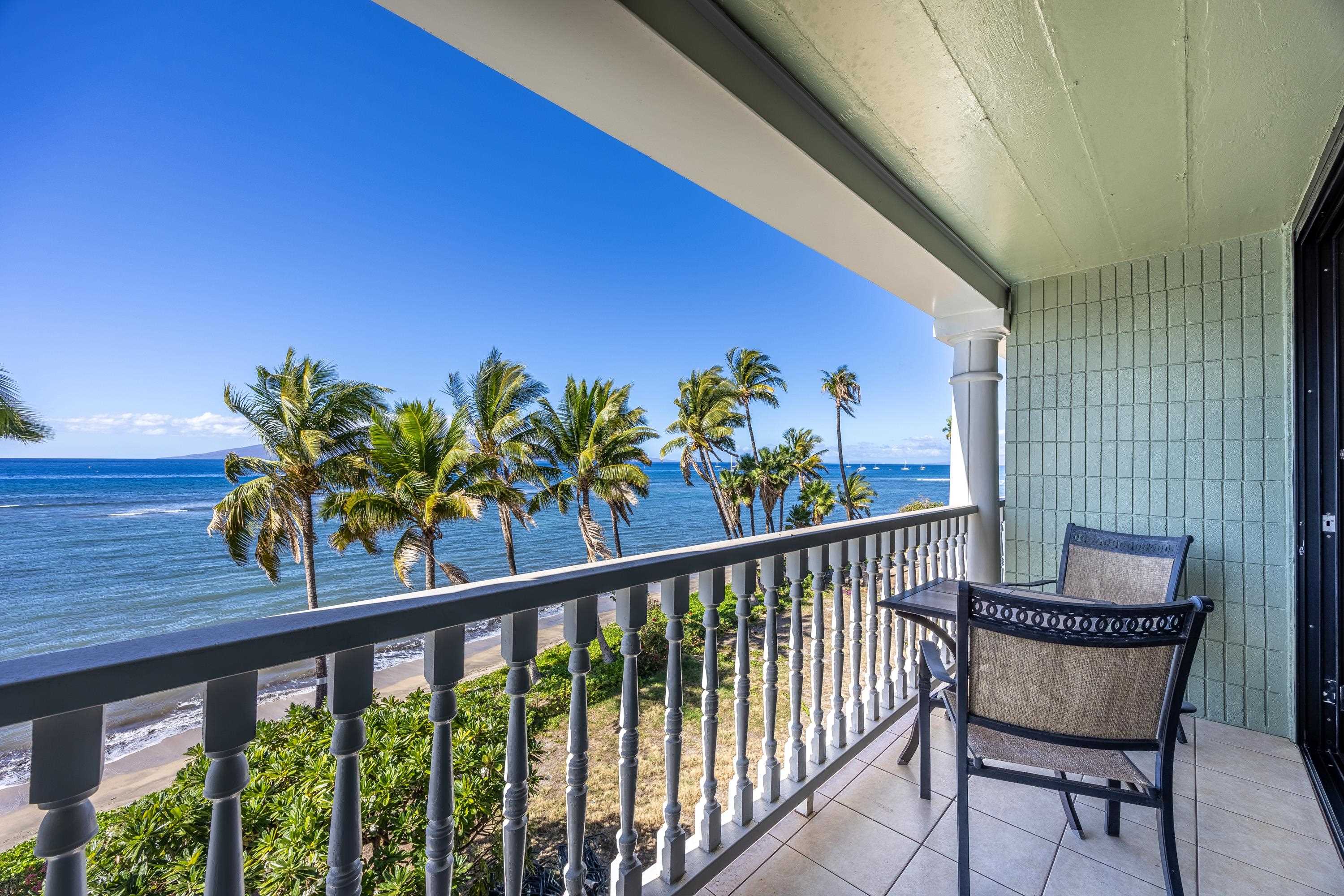 Welcome to Lahaina Shores, a premier oceanfront destination in the heart of Lahaina Town. Unit 425, located on the 4th floor, is a rare find boasting breathtaking views of the Pacific Ocean and the island of Lanai, visible from the balcony, kitchen, and living area. Currently undergoing extensive exterior renovations and landscaping enhancements, Lahaina Shores is set to reopen in June 2025. For those with an eye for value and a vision for investment, this studio offers a unique opportunity not to be missed.