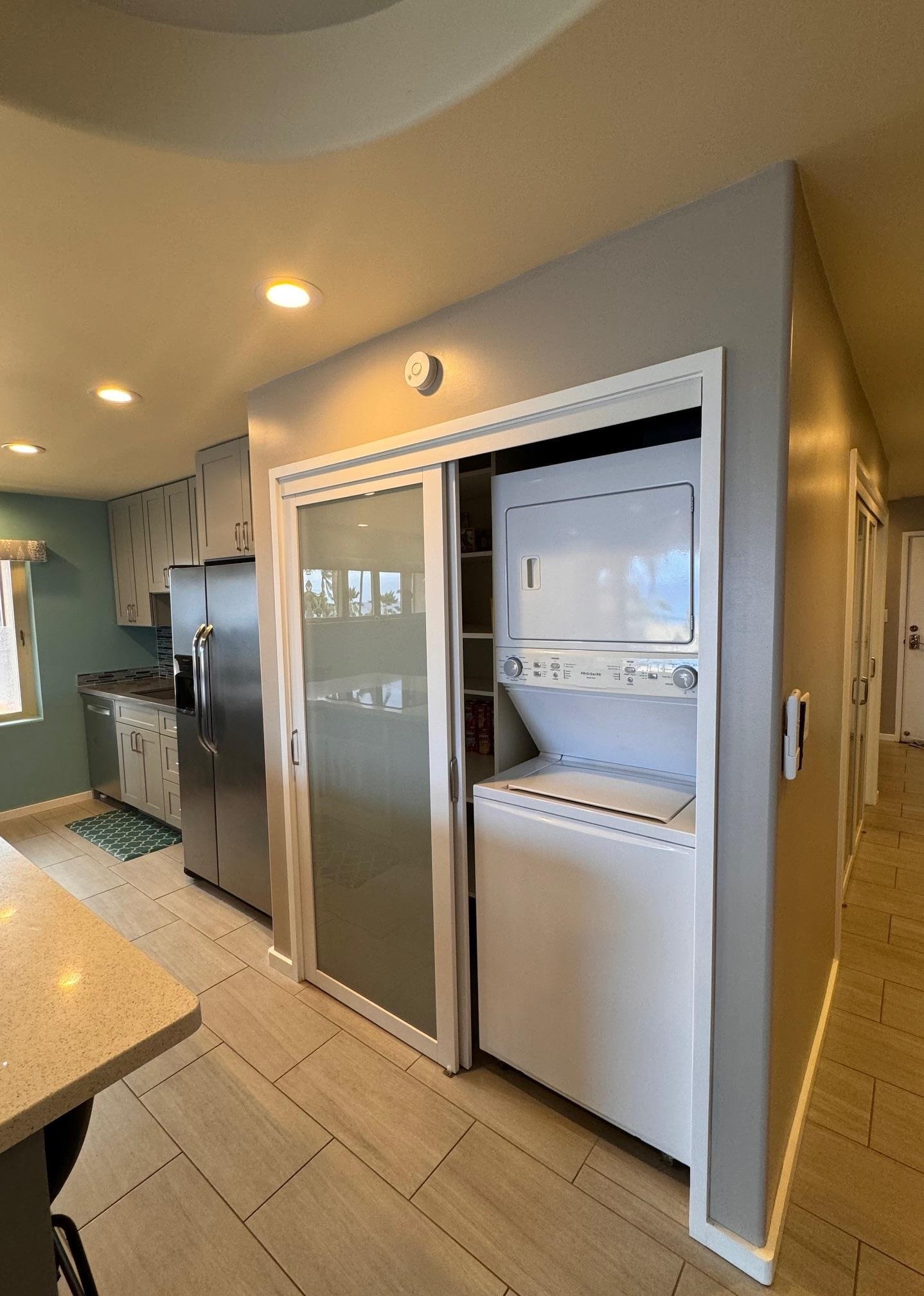 This condo was taken down to the studs and brilliantly remodeled in 2023 with full time living in mind. The Mahinahina Beach condos, with only 32 units, is the only oceanfront condominium complex that does NOT allow short term rentals in West Maui, creating a peaceful environment, ideal for seasonal or full-time living. This expansive 2 bedroom, 2 bath second story corner unit comes with panoramic ocean and outer island views. Enjoy spectacular year-round sunsets from the large 300 square foot living room style lanai. Access two reef bottom surf breaks directl from the property. This thoughtfully designed condo is complemented with a deeded garage parking space with an additional above ground parking spot. Complete with amenities such as your personal 7ft.x 10ft.x 12ft lockable storage room, bike storage, and a separate area for your kayaks and surfboards. An oceanside deck, swimming pool, hot tub, small gym, tiled outdoor shower and 2 nice poolside bathrooms makes this a perfect spot to embrace indoor and outdoor living. The curved sofited ceiling, tiled flooring, and sparkling quartz countertops creates a feeling of elegance while still maintaining that warm island feeling. The large island counter has a built-in wine fridge, oven, storage cabinets, and most importantly was purpose built to allow for four chairs to nicely fit underneath making a delightful dining area. Additional details include: Custom large pantry, closet organization systems, in unit W/D, all new in-unit plumbing, 3 room multi-zone mini split AC system, On-demand tankless hot water heater, and an added hallway closet. There are plans to enhance the appearance of the entire complex by installing new composite modern shakes and painting the exterior in the near future. This oceanfront condo lives like a home!