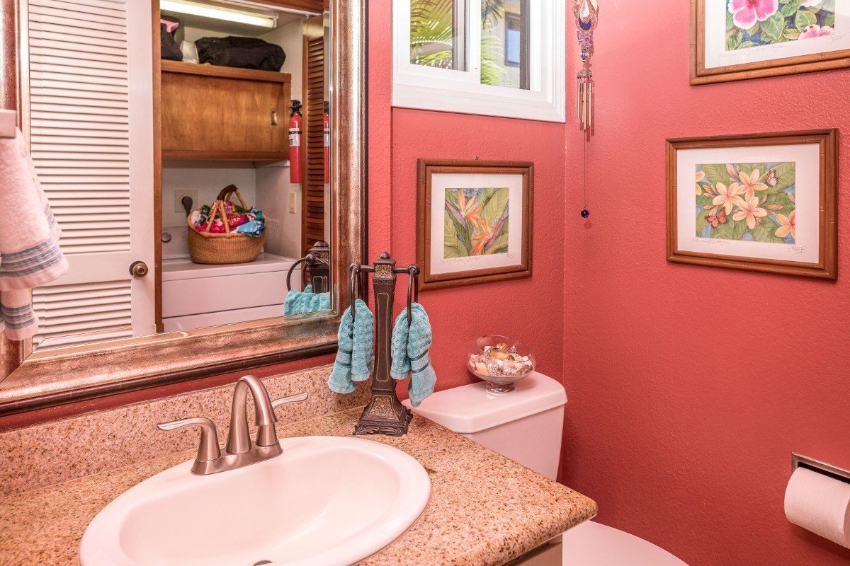 Mesmerized by the OCEAN VIEWS and the sound of crashing waves onto the lava rock bluff below, you will never want to leave your 96 SF covered lanai. Perched a safe distance above sea level, this top floor, townhouse style 2 BD 2.5 BA condominium with AC has a bonus Loft with 3/4 BA ~ for Office or 3rd BD. Customized Tumbled Marble, Slab Granite and Porcelain Tile is tastefully used throughout the Kitchen and Living Room. Vaulted ceilings in all bedrooms (and Loft). Primary Suite offers a Killer Ocean View featuring dramatic Sunsets. Fall asleep to the sound of whales frolicking in the moonlight during whale season (Nov - Mar) as they pass the Southernmost tip of the Island of Kaua’i. See both Sunrise and Sunset at the point, over the water from a grassy knoll. Play Pickleball or Tennis. BBQ your favorite foods in the fresh ocean air. Swim in the salt water pool or soak in the Jacuzzi. This invigorating Lifestyle awaits you. All you need is your suitcase. Fully furnished, turnkey Vacation Rental, Investment Property and/or your Island Home. Full size washer and dryer are located in a closet off the entry powder room. Pets are allowed with Board Approval, and walking trails abound. From the parking lot, you can hike your way passing by Shipwrecks Beach at The Grand Hyatt to the Makawehi Cave site and Tortoise Preserve at Mahaulepu Beach. Or stroll down the hill to Poipu Beach Park for snorkeling, or Waiohai Beach for surfing and paddle boarding. Shopping, Dining and World Class Golf Courses are very close at hand. Makahuena translates "as far as the eyes can see". 2302 is truly a Sanctuary in Paradise! Virtual tour is attached for your viewing convenience. Click on the "film clip" icon above or hover over the QR code in photos. Low HOA fees of $1007 per month include: Homeowners Insurance for Fire, Food, and Hurricane, Water, Sewage Treatment, Trash, TV Cable, Internet, and Reserves. Buildings are slated to be painted by the HOA sometime in the near future.
