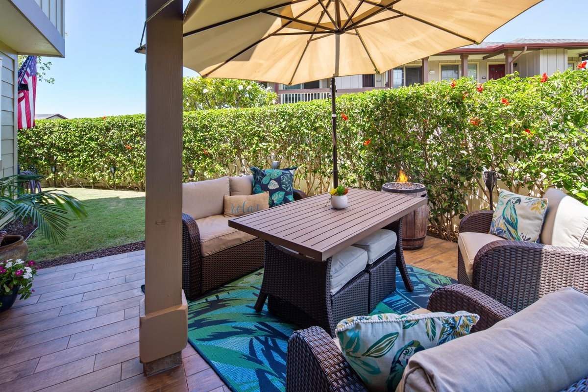 Relax & enjoy the good life at #2903! In a peaceful corner location, this well-maintained & efficiently designed townhome (no neighbors above or below) has been beautifully upgraded & boasts AC, private yard, mountain views & even peeks of ocean.
