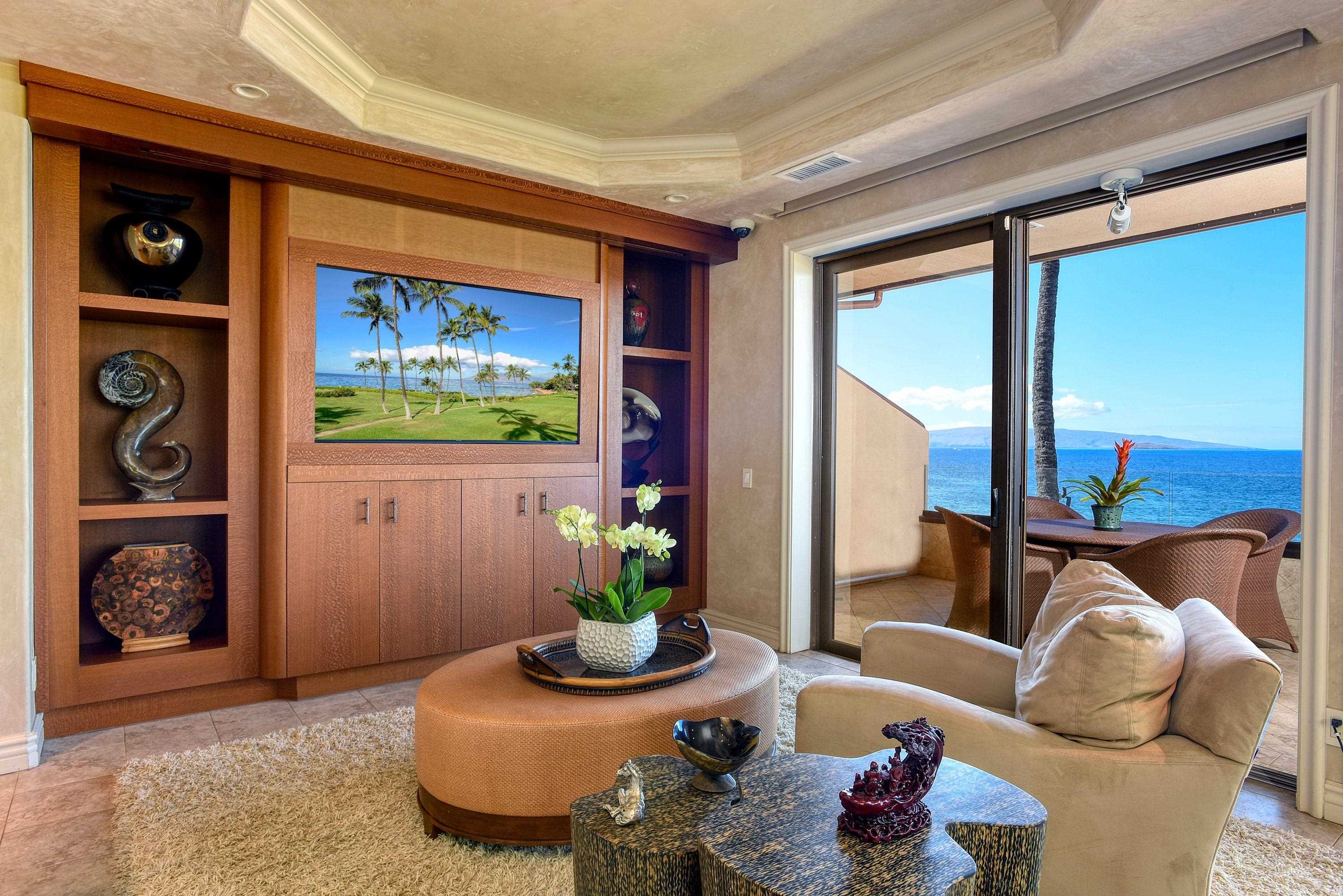 Makena Surf offers the security of a gated community on one of the island’s most beautiful secluded beaches. This second-floor, 2 bedroom/2 bath residence has been completely remodeled with thoughtful choices of marble, granite, etched glass & exotic woods. The coveted end-unit faces lush tropical landscaping & is the only building in Makena Surf fronting a sandy beach. Wrap-around windows take advantage of stellar views of Kaho‘olawe, Molokini, Lanai, West Maui & breathtaking sunsets. Sold furnished, with quality appliances, custom framed art & sculptures throughout, this home boasts ultra-wide TVs, lit coffered ceilings, an in-home security system & extensive upgrades. Makena Surf offers its owners many amenities including 2 luxury swimming pools & spas, 4 professionally designed tennis courts, basketball hoop, 2 herb gardens, BBQ facilities, & superior on-site security. It also has 105 luxury units & approximately 68 are vacation rentals with a 5-night minimum. This turnkey Makena Surf residence is in a quiet location unlike any on Maui yet close to 5-star resorts, dining & shopping!