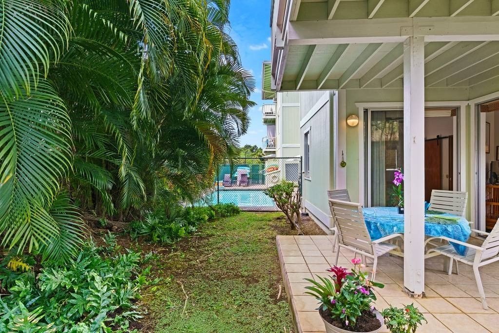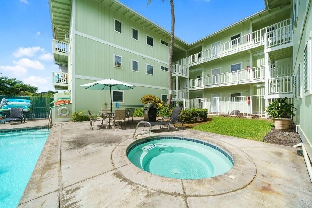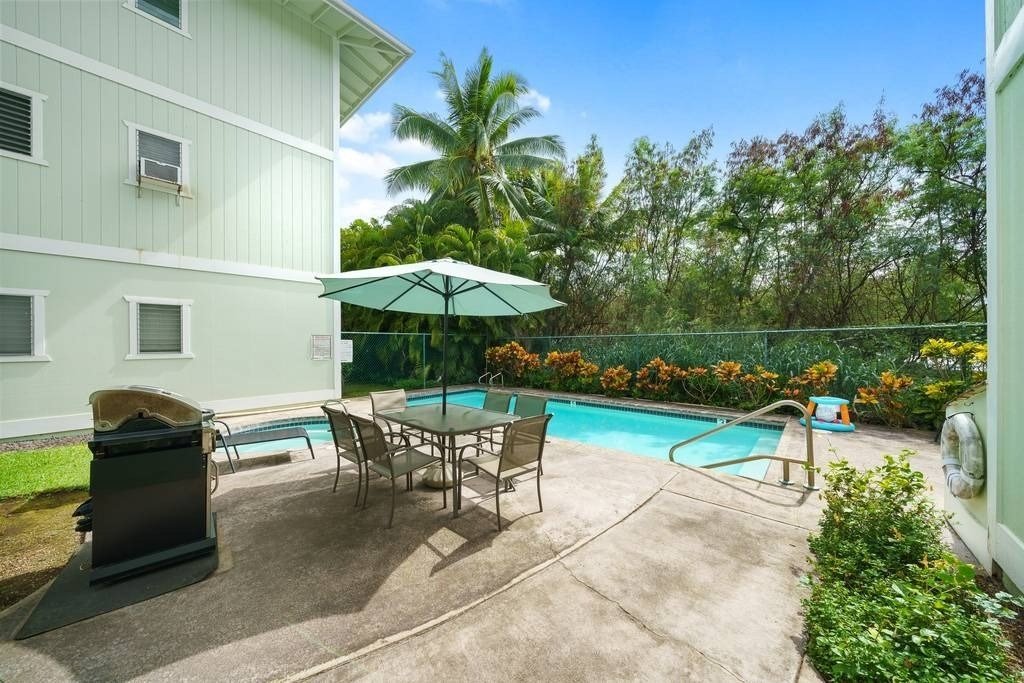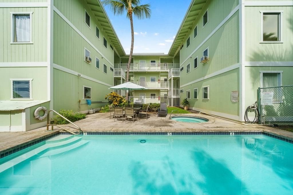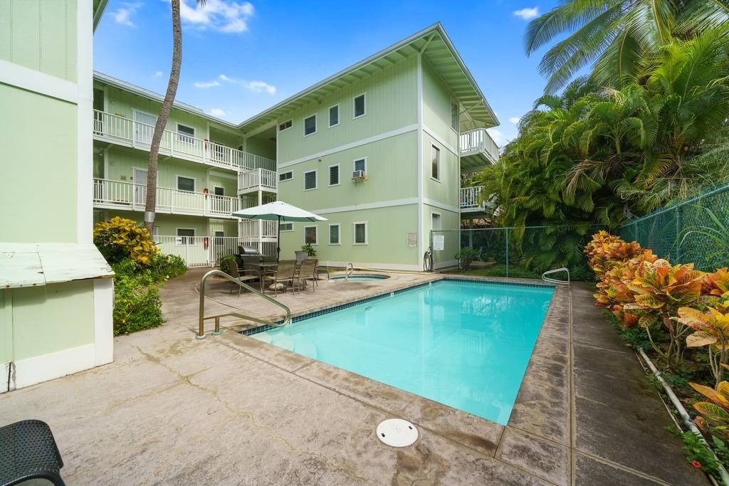 Ground floor, private corner unit with lovely garden view. Complete remodel in 2015 with upgraded vinyl floor throughout, new counter tops in kitchen and bathrooms, accent wall with colorful tropical wall paper, new ceiling fans and more. Back lanai is cool with intimate private view of garden area and pool area. One reserved parking stall and auto washing station in parking lot. Common pool and spa. Recreation room with extra storage. Steps to Kahaluu Beach Park and easy drive to shopping, restaurants and popular recreations areas. Comes completely turn key.