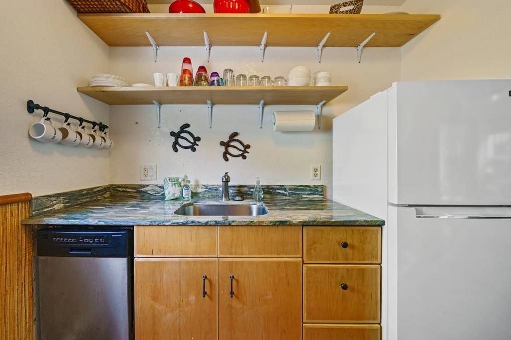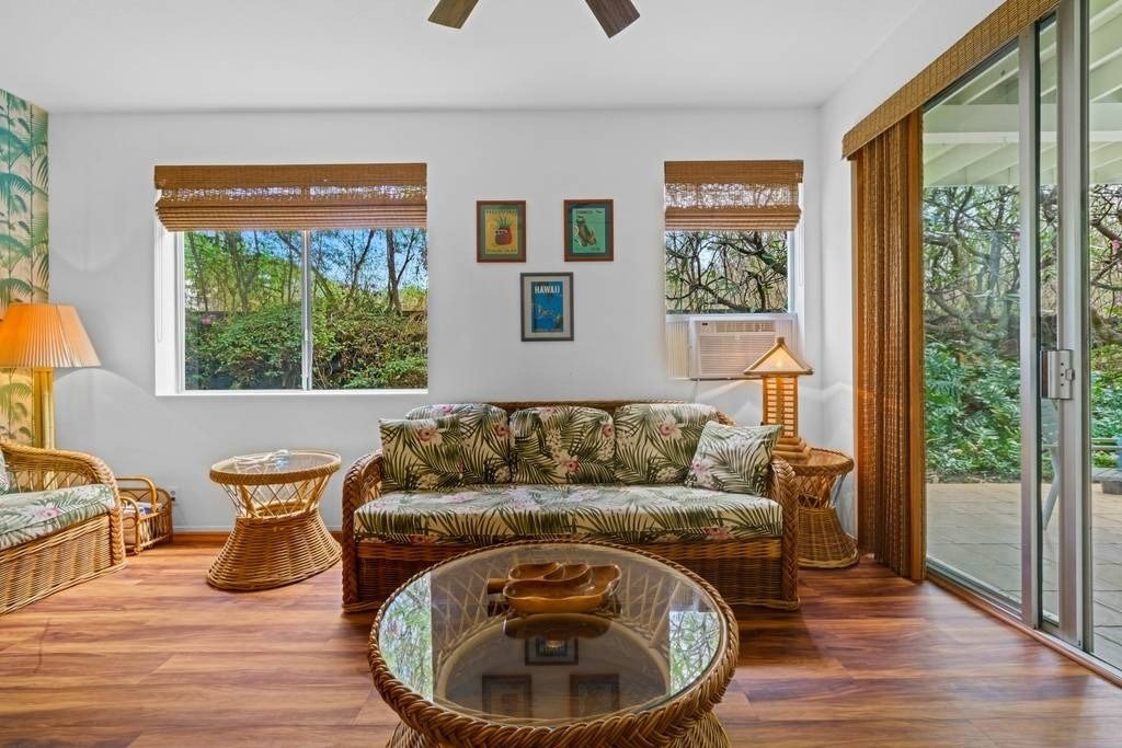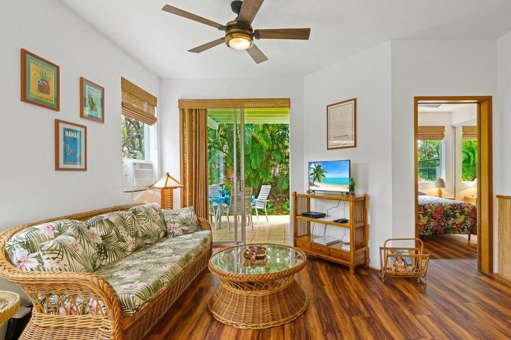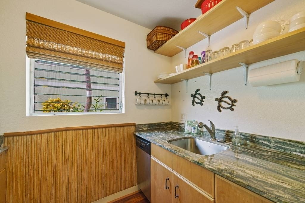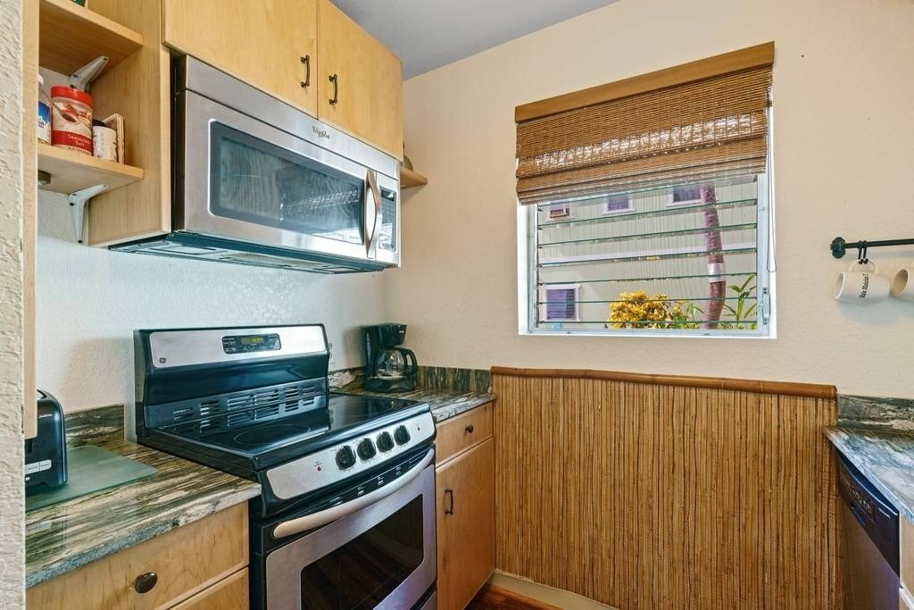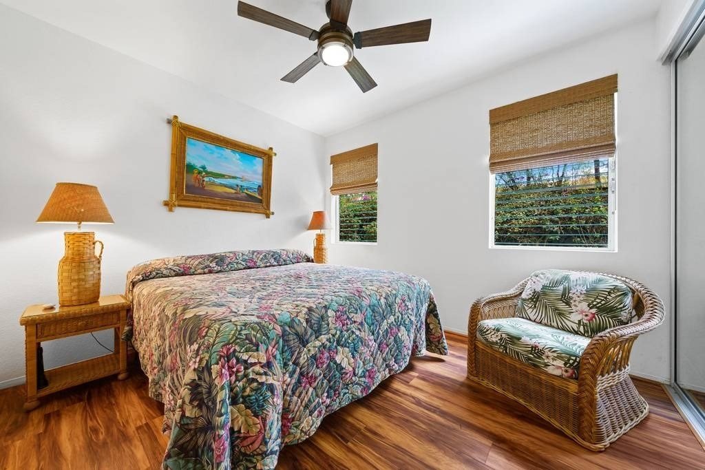 Ground floor, private corner unit with lovely garden view. Complete remodel in 2015 with upgraded vinyl floor throughout, new counter tops in kitchen and bathrooms, accent wall with colorful tropical wall paper, new ceiling fans and more. Back lanai is cool with intimate private view of garden area and pool area. One reserved parking stall and auto washing station in parking lot. Common pool and spa. Recreation room with extra storage. Steps to Kahaluu Beach Park and easy drive to shopping, restaurants and popular recreations areas. Comes completely turn key.