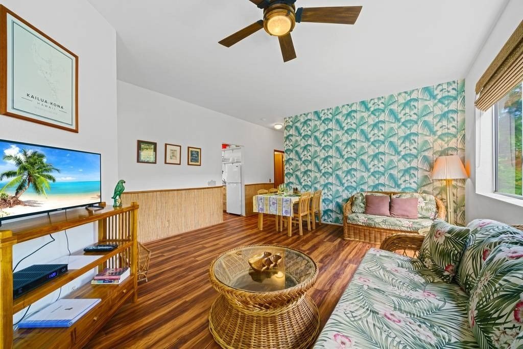 The Makolea is located in a very quiet area of Keauhou in Kona, only, at most, 500 feet up the street from Kahaluu Beach. Its east and south sides sit against untouched lands covered with thick greenery, cushioning the property even further.
