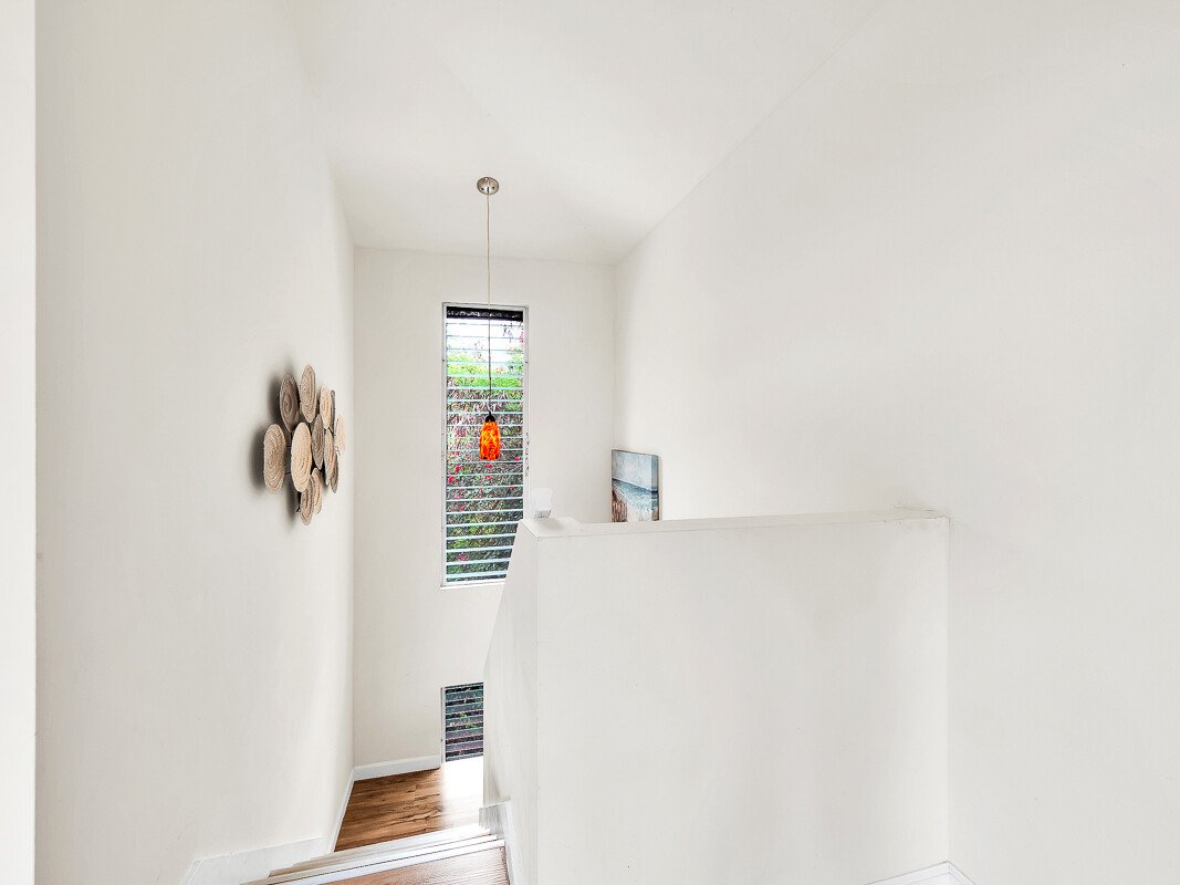 Upgraded Interior: The extensive renovation featured upgraded flooring, paint, artwork, ceiling fans, lighting fixtures, switches, baseboards and trim for a polished, modern aesthetic. The kitchen was remodeled with updated cabinetry, quartz counters, and premium appliances. Both bathrooms were updated with contemporary finishes, such as new vanities, shower tile, toilets and fixtures. High vaulted ceilings on the top floor enhance the open, airy island feel.