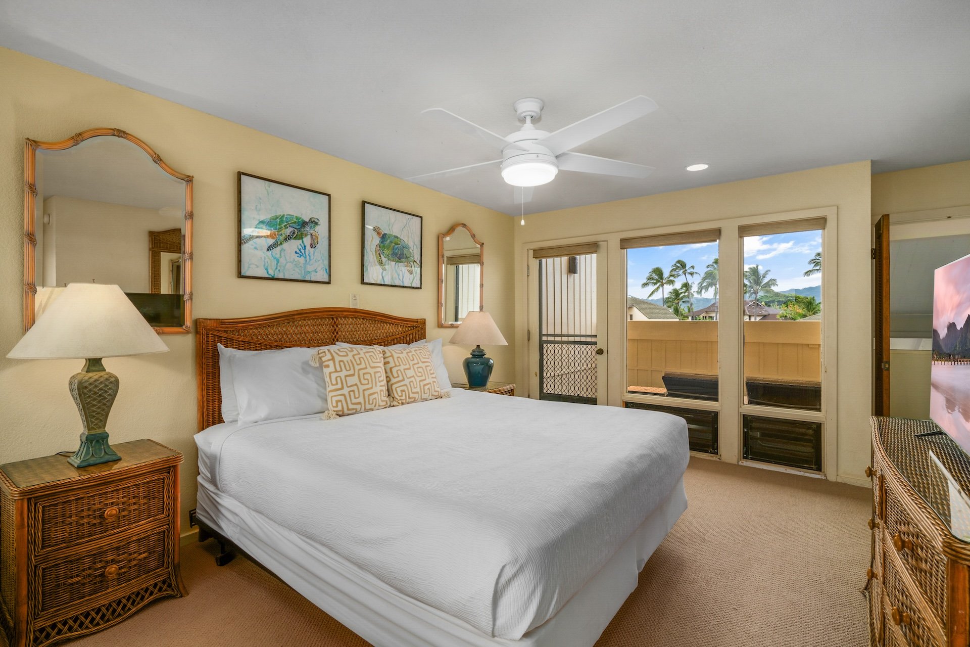 Welcome to Manualoha 608, your serene sanctuary on the south shore of Kauai. Ideally situated, this beautiful condominium is near Poipu and Brennecke's Beach, close to a wide variety of shopping and dining options, Botanical gardens, Waimea Canyon, and a wide variety of outdoor activities.Step inside to a spacious living and dining area, extending to an outdoor lanai. Perfect for movie nights, the living area features a 46-inch TV, DVD player, Bluetooth stereo, and smart TVs. Adjacent is the well equipped kitchen and dining area, with electronic charging stations ensuring convenience for all.The main bedroom loft is an expansive retreat with a 22-inch TV, an attached bathroom with double sinks and a walk-in shower, and two private lanais. Enjoy nightcaps as you listen to the waves or take in ocean and mountain views. The guest bedroom shares the guest bathroom, and the living room’s sofa bed offers extra sleeping space. Tastefully decorated in a modern plantation style, this condominium brings the breezy vibes of Poipu into every room. Unique are its three lanais: one off the living area and two off the master bedroom. Relax on a chaise lounge or enjoy a meal with a view; the upper lanais are true sanctuaries.Manualoha 608 is perfect for your whole ohana. Just 100 yards from Brennecke's Beach, it’s also steps from the tennis courts, and the Manualoha ocean-view pool which is one of the best pools in Poipu, known for its stunning ocean views.Whether watching sea turtles in the evening or monk seals in the morning at Brennecke Beach, Manualoha 608 offers an unparalleled experience of island living.Currently an active vacation rental. Ready to take a virtual tour? Copy and paste these links; Virtual Walk Through; https://bit.ly/45pgrvW Grounds and Unit Tour; https://bit.ly/3VeLfeo