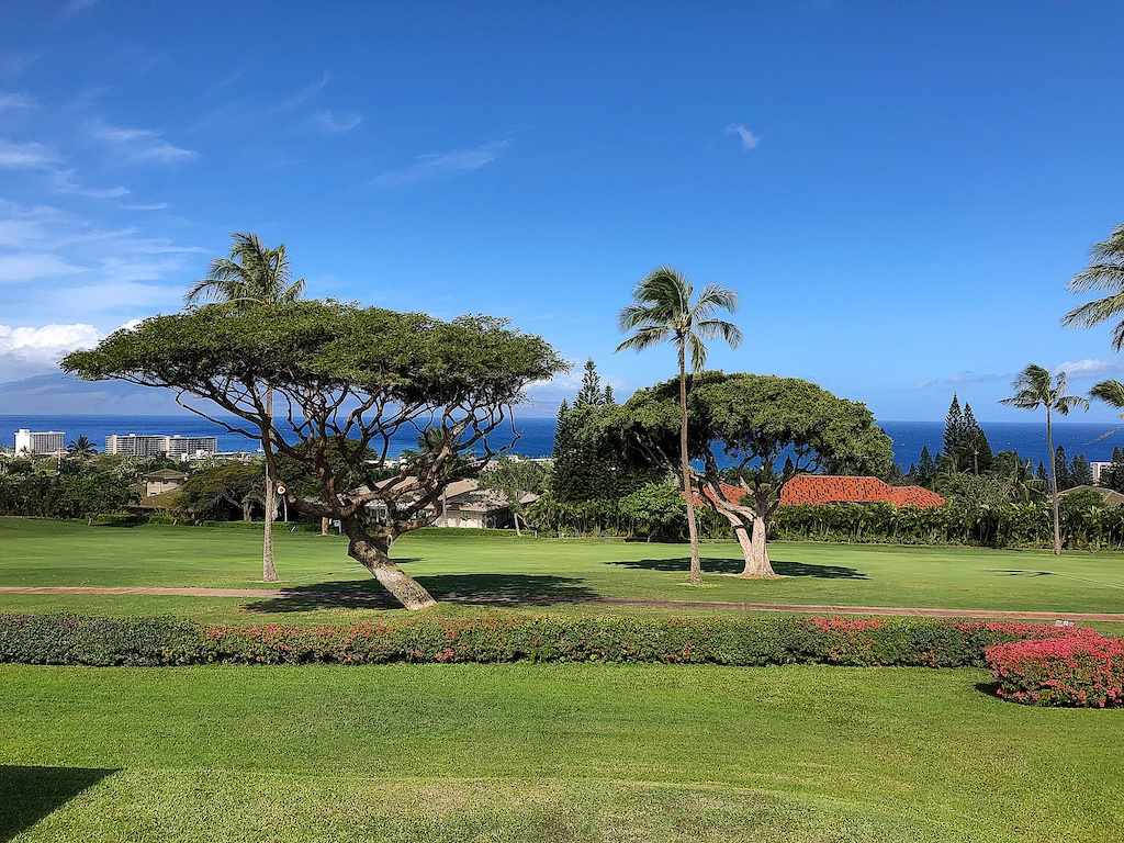 LUXURIOUS, SPACIOUS and VERY PRIVATE. Elegant 1728 sq. ft. executive residence with beautiful OCEAN, ISLAND, GOLF COURSE and SUNSET VIEWS. Upper level, north end, capturing tropical trade winds and offers an extra large kitchen and a private, interior entry. The interior is light and bright with a large, master suite and ensuite. Guest quarters are private and separate from the master bedroom, great for you and your guests. High ceilings and expansive sliders lead out to a spacious lanai with ocean, island, golf course and sunset views. The covered lanai is fitted with power sun shades and is perfect for dining or relaxation. This residence offers a renovated cook’s kitchen, with a new induction stove, oven and beautiful tropical wood cabinets and counter top. Air conditioning keeps you cool on extra warm days. All dramatically set along the Kaanapali Golf Course’s 9th fairway with expansive ocean multi-island views. Set on almost 38 acres, the Masters is a GATED community with 2 pools and hot tubs, tennis courts and tropical landscaping. Only minutes to the Kaanapali beaches, hotels and shops. Offered tastefully furnished. The Masters is a pet friendly community (1 pet only). Available to show on short notice.
