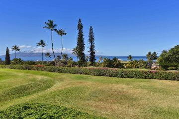 Stunning ocean, outer island, and sunset views await you in this fully remodeled, fully furnished, upper corner unit, situated on the 9th fairway of the Royal Ka’anapali golf course. The entry on the ground floor welcomes you into a lovely foyer, with plenty of space for storage. As you make your way to the landing, you’re immediately greeted with breath-taking ocean views. The gourmet kitchen features a Quartz waterfall island and countertops, solid maple cabinets, glass tiled backsplash, and ceramic wood tile flooring - which you’ll also enjoy in the entry, landing, baths, and lanai. The range, microwave, and dishwasher are Bosch; the fridge is a Samsung Bespoke French door fridge with beverage center. Cooling comes from energy-efficient, 3-zone split system air conditioners and near silent Fanimation DC-motor ceiling fans. At the end of your day, retreat to your spacious primary bedroom with ocean views, lanai access, and a his and hers walk-in closet. Your spa-like ensuite spoils you with a relaxing soaking tub, large glass-walled shower, and double vanity. Located on the Ka’anapali Hillside, the Masters is a secure, gated community, spanning 38 acres of lush tropical landscape. Amenities include 2 swimming pools and spas, 4 tennis/sports courts, and a community orchard and garden. You’re a short golf cart ride to the Fairway Shops as well as the shops and restaurants at Whaler’s Village, and the world famous Ka’anapali Beach. This is an owner-occupied unit, which may be viewed with short notice, for qualified buyers. AOAO Documents under the D section of the Listing