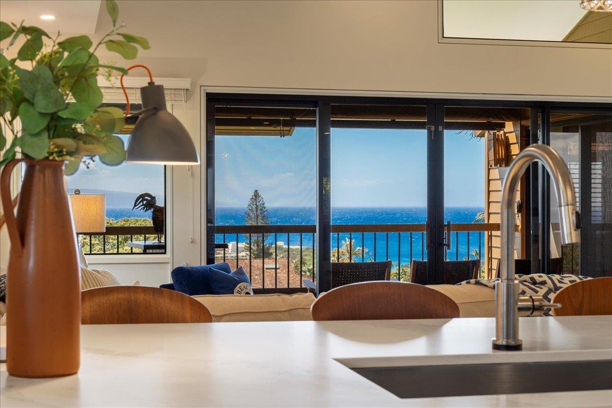 Perched on the top row in one of Ka'anapali Masters’ most coveted locations, Residence 3408 offers breathtaking West-facing ocean and outer island vistas, year-round panoramic sunsets, and front-row seats to seasonal whale watching. Overlooking the renowned Ka'anapali Resorts, this 2-bedroom, 2-bathroom corner-unit residence boasts a single-level, open floor plan with soaring vaulted ceilings and expansive windows, flooding the space with natural light. Completely remodeled in 2019 and updated in 2025, this residence is adorned with ultra high-end finishes, including imported marble, chef-inspired appliances, custom cabinetry, and remote-powered window treatments—every detail designed for sophistication and comfort. A state-of-the-art air conditioning system ensures a cool and inviting atmosphere year-round. Offered fully furnished and turnkey, Residence 3408 is thoughtfully designed to accommodate large families or guests, comfortably sleeping up to 8 people. Nestled within the exclusive gated community of Ka'anapali Masters, residents enjoy access to two heated swimming pools, two hot tubs, four tennis courts, and lush tropical landscaping spanning 37 acres. A short golf cart ride takes you to Kaanapali Beach and Whaler’s Village, where world-class shopping, dining, and golf await. This is truly one of the finest residences ever offered at Ka'anapali Masters—an exceptional opportunity to experience the unmatched Ka'anapali lifestyle.