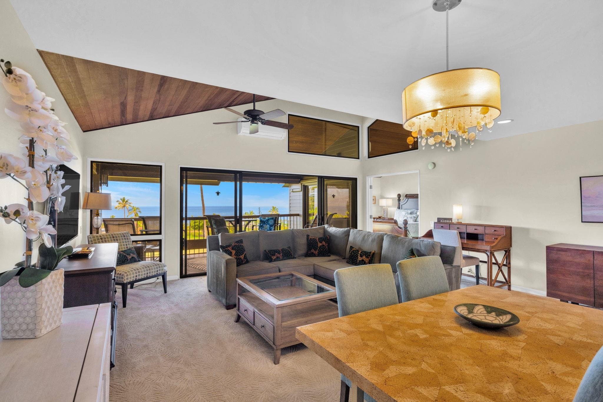 Views, views, views: Molokai and Lanai, nightly sunsets, whales frolicking in season all can be yours when you become the owner of #706 Masters at Kaanapali. Standing in your updated kitchen looking out over the Kaanapali Golf Course towards the Sheraton and Black Rock you will see the two islands, greenery and the vast blue of the Pacific Ocean. Looking for recreation close to home? Enjoy pools, pickle ball and tennis courts. Kaanapali beaches and Whalers Village where people come to play are down the gently sloping hill. Have you had enough excitement for the day? Retreat to your own private lanai for dining al fresco on your sheltered lanai. Sold furnished. #706 is cooled by a split A/C system. There is generally a nice cross breeze should you elect not to use the A/C. Call your favorite Realtor to setup a viewing. Dedicated and Guest parking. Check out the virtual tours.