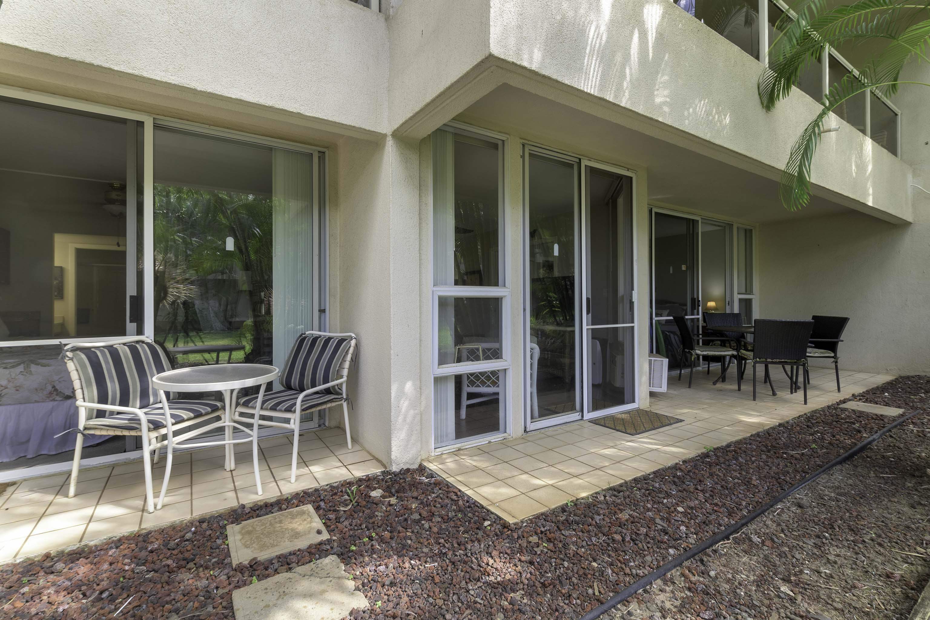 Welcome to the Maui Banyan! This rare 2 bedroom, 2 bath unit is situated on the ground floor in a shady, private, premier front building. Located in South Kihei, Maui's sunny south coast, across from the golden sands of Kamaole Beaches. At Maui Banyan A102, you will find upgraded kitchens and bathrooms, fully furnished and rentable as is or with the option of studio lock-off. You can explore the natural beauty and endless activities, relax on the beach, enjoy sunsets, and the adjacent lavish lifestyle of the Valley Isle Wailea. Whales will jump, your family will delight, and you will experience all the qualities of Live, Love, and Maui. The finest Shopping, gourmet dining, entertainment, and championship golf courses are all nearby for your enjoyment and convenience. The BBQ is right outside your unit in the cool grassy courtyard. The pool, guest pavilion, tennis courts, putting green, and the beach is just a short skip and jump away. This complex is a branded Aston Hotel property with management at the front desk. Own your own hotel suite, short-term vacation ready! Please note Realtor Remarks and call your favorite Agent now for that information and to set a showing.