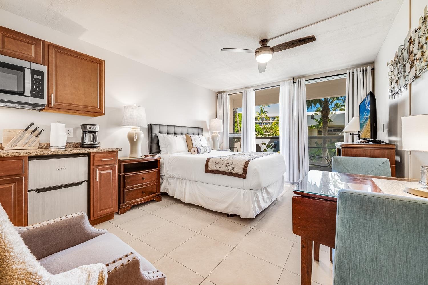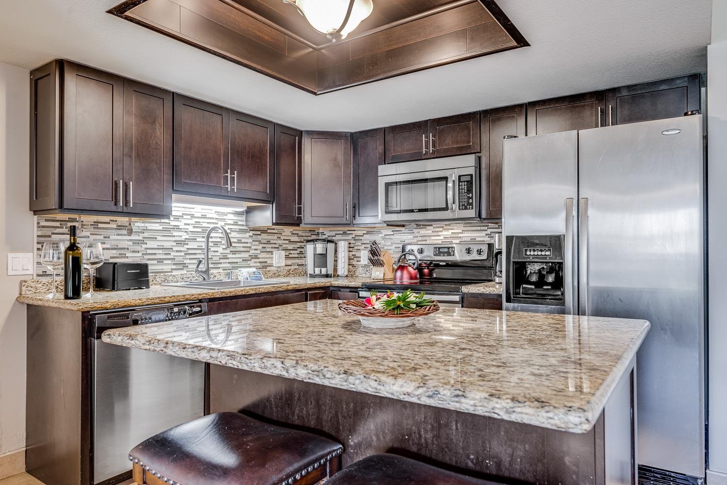 Hotel Zoned Maui Banyan G-210 is an upgraded, turn-key 2-bedroom, 2-bath lock-off condominium in a highly desirable complex directly across from Kamaole Beach Park II in South Kihei. This flexible floor plan allows you to use the unit as a full 2-bedroom suite or as two separate rentals, creating strong income potential, while still offering an ideal personal getaway. The interior features quality finishes such as granite countertops, updated cabinetry, tile flooring, and two well-appointed bathrooms, providing a comfortable and attractive setting for owners and guests alike. Maui Banyan offers resort-style amenities including two pools, hot tubs, BBQ areas, a tennis court, and beautifully landscaped grounds, all within walking distance to sandy beaches, dining, shopping, and recreational activities. Hotel zoning and the property’s prime location make G-210 an incredible opportunity for savvy buyers seeking a turn key South Maui property with great rental potential.