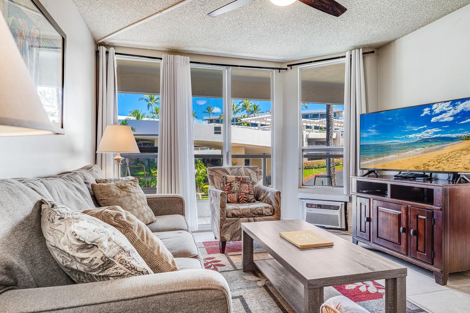 Located in the heart of Kihei, Maui Banyan is a well-maintained condominium complex with a resort-style atmosphere. It is not oceanfront, but the beautiful Kamaole Beach Park II is right across the street.