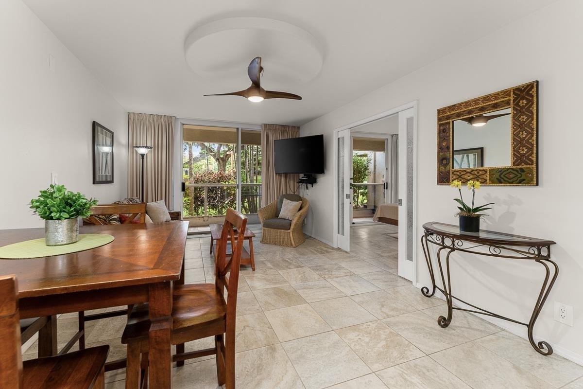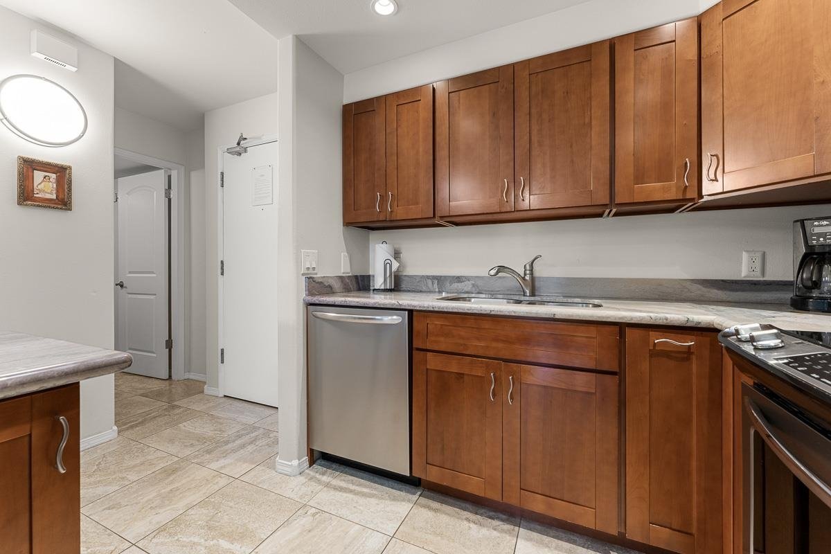 Totally updated 1 bedroom, 2 bath ground floor Maui Banyan condo is a MUST SEE! Beautiful kitchen features granite countertops, wood cabinetry, L shaped island, pendant lighting and stainless steel appliances. Gorgeous tile floors throughout, island style furnishings, flat screen TVs, tiled lanai and upgraded ceiling fans, are a just a few of the features of this turnkey condo. Bedroom has a “floating bed” with accent lighting, closet organizer and adjoining master bath has walk in shower with river rock detail, and vessel sink. Guest bathroom has a walk in shower, bamboo etched glass enclosure and mosaic tile accent. Washer and dryer in unit. This condo has easy access with no steps to unit. Maui Banyan features 2 pools & spas with BBQ areas, tennis court, and a parking garage. Located just across the street from Kamaole 2 beach park with lifeguard station, showers and white sand beaches. Close distance to dining, shopping and more! Maui Banyan is a concrete building and is H-2 hotel zoned allowing vacation rentals. Maintenance fee includes Wi-Fi and basic cable. Pet friendly complex for owners. Unit includes one deeded parking space. Don’t miss this great opportunity to own at the Maui Banyan… a versatile property that can be used as a vacation rental, second home or full time residence!