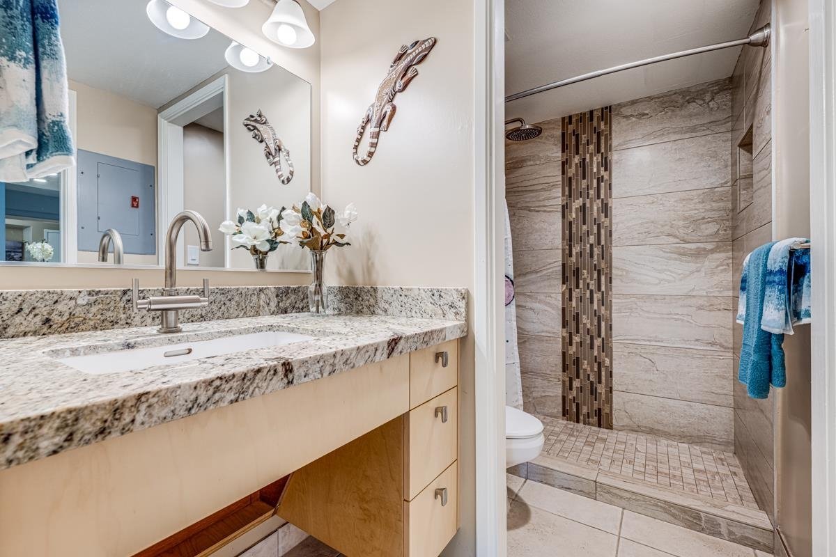 Welcome to Maui Banyan T107, a beautifully remodeled and partially furnished 2 bedroom, 2 bathroom lockout condo, boasting rare features, and an unbeatable location. It's distinctive characteristics make it a standout in the complex. Experience the convenience of a walk-out unit, allowing convenient access to the pool area. Designed with accessibility in mind, T107 offers easier access showers and an oversized balcony door. This versatile lockout unit is an exciting and flexible rental opportunity, or enjoy it for yourself short or long term! Step inside and admire the quality upgrades, including tile flooring and granite countertops. The tasteful remodeling showcases the attention to detail and care that has been put into creating a welcoming environment. Located across the street from Kamaole Beach Park II, enjoy easy access to sunbathing, swimming, and breathtaking sunsets. Nearby dining and shopping options provide an unforgettable Maui experience. Don't miss this exceptional Maui Banyan opportunity. Embrace the extraordinary features and prime location as you create and enjoy a personalized sanctuary in paradise