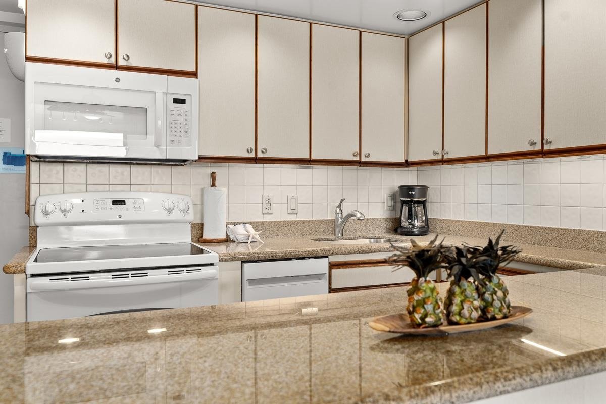 Perched oceanfront in North Kaanapali, Maui Kai is a special boutique complex complete with a pool, spa and BBQ area. PENTHOUSE unit 1007 with an enclosed lanai has been a home away from home to the current owners for a couple generations and is now being offered for YOU to build your own priceless Maui memories! Upgrades include granite kitchen and bath counter tops, an updated bathroom, newer refrigerator and dishwasher and brand-new carpet. The BEST thing about this dreamy, penthouse getaway are the EPIC OCEAN views and seasonal whale watching. Open the large lanai windows and enjoy the wonderful breezes. Turtles and parrot fish are easily spotted looking straight down…there’s always something to watch!