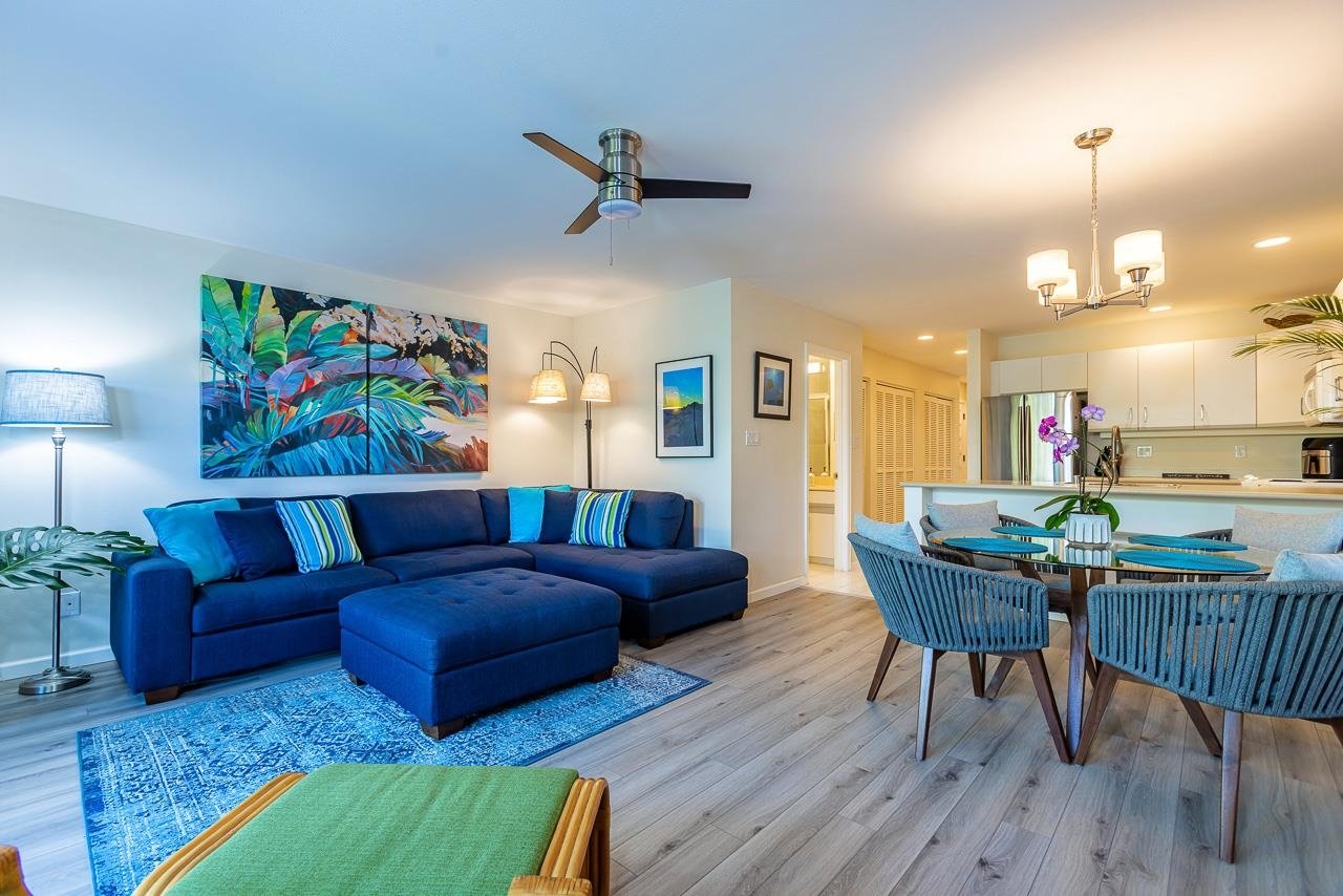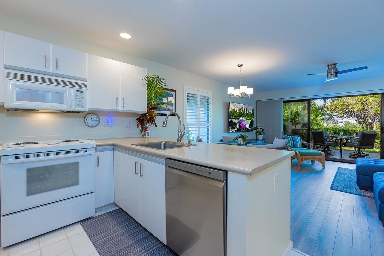Competitive new price for a quick Sale. If you've ever dreamed of living just moments away from pristine beaches, breathtaking sunsets, and a laid-back tropical lifestyle, this could be the opportunity you've been waiting for. Nestled on the sunny side of South Maui, this newly available, never-before-rented 1-bedroom, 2-bathroom ground-floor condominium in Maui Kamaole offers the ultimate island experience. Step inside and you’ll immediately notice the condo's well-thought-out updates. This pristine unit boasts energy-efficient appliances, new air conditioning units, and a design that makes the most of the cool Maui trade winds—keeping you comfortable no matter the season. Included in the sale are the tastefully selected furnishings, wall art, fully stocked kitchen, completely turn-key, ready for you to move in or start renting right away. Updates include stylish vinyl flooring, fresh paint, smooth non-popcorn ceilings, and recessed lighting throughout. Every detail, from the white louvered doors, new storage shelving, to the new fans and light fixtures, has been thoughtfully chosen to complement the island's relaxed vibe. The second private lanai off the master bedroom is the perfect place to unwind, sip your morning coffee, or enjoy a quiet evening under the stars. The condo is designed to enhance the indoor-outdoor Maui lifestyle, allowing you to seamlessly blend your living space with the natural beauty that surrounds you. One of the highlights of this condo is its prime location within the Maui Kamaole complex. The owners love how close they are to the pool and spa, which feel almost like a private club for the majority of the year. If you’re seeking relaxation, you’ll appreciate the multiple BBQ areas, outdoor dining spaces, and several tennis courts that are available for residents to enjoy. Additional features include a designated parking space, making it easy to come and go whenever you please. Maui Kamaole also borders Wailea and Makena, giving you even more opportunities to explore—whether you're looking for secluded beaches, scenic lava fields, upscale resorts, or fine dining. There’s no shortage of things to do, and you'll never run out of places to explore on this beautiful island. Whether you’re here for a weekend getaway or seeking a place to call home, this condo offers everything you need for a convenient and luxurious lifestyle. Maui No Ka Oi (Maui is the best) truly captures the essence of what this condo offers—a blend of luxury, nat