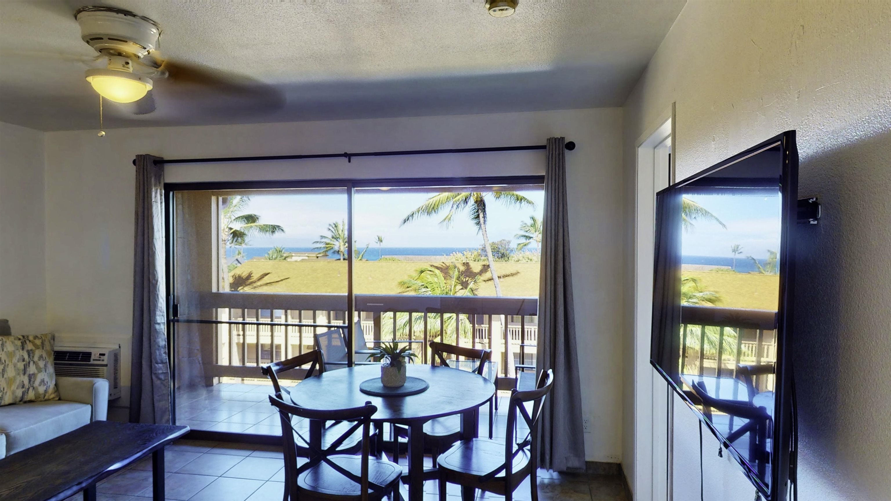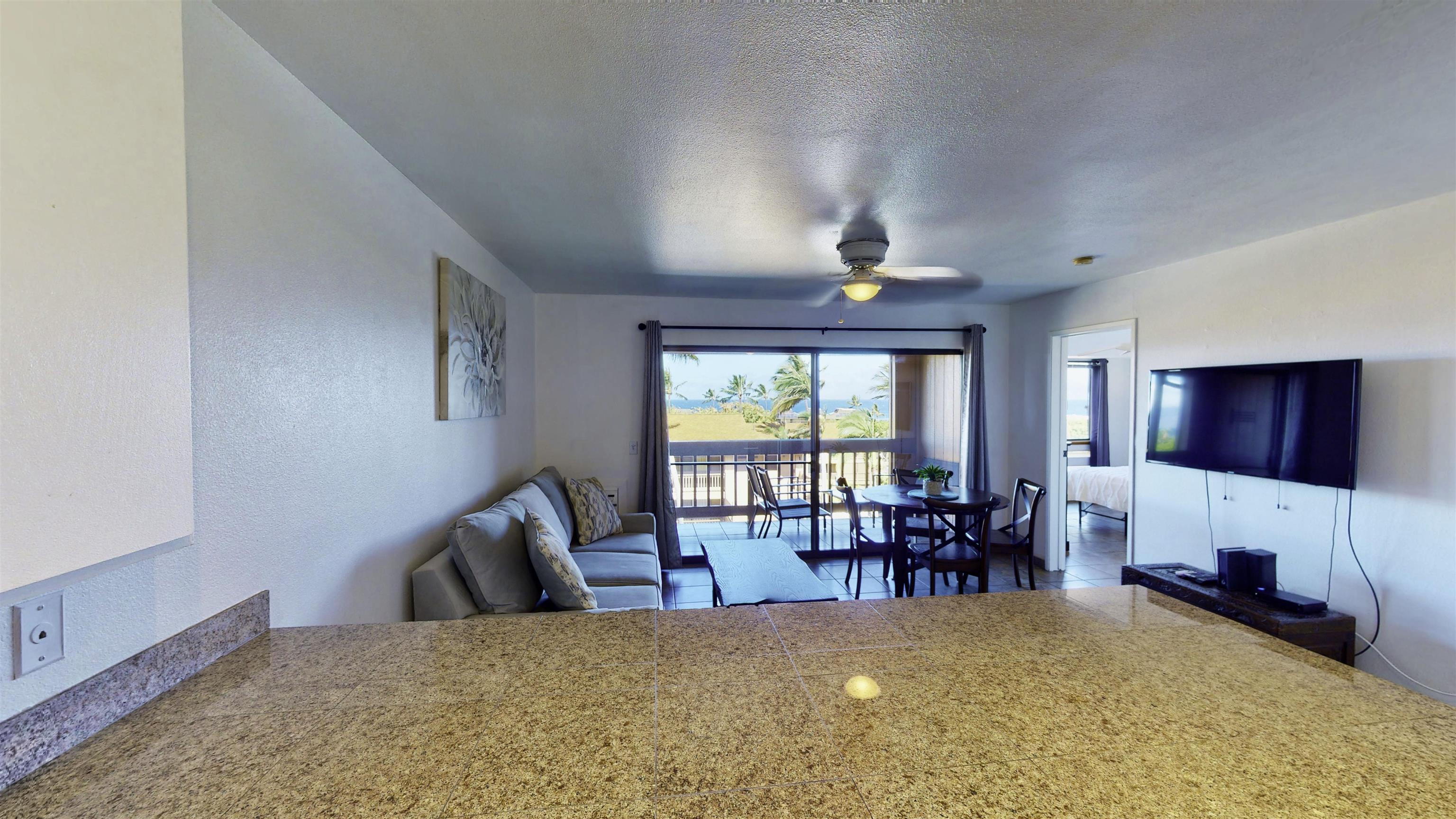 Stunning ocean view condo in West Maui! The unit is on the third floor with panoramic 180 degree ocean views of Lanai and Molokai. Watch the whales breaching from your lanai. Updated with granite counters, stainless appliances, track lighting, tile floors, and tile shower. Property sold partially furnished with fridge, washer and dryer, bed set, dining set, sofa bed, coffee table, and lanai furniture (excluding kitchen items, linens, etc.). Property includes a swimming pool, bar-b-que area, and fitness area. HOA/Maintenance fees include water, sewer, garbage, exterior maintenance/insurance, internet, and cable. Condo is fee simple with one included parking spot. Make sure to check out the 3D tour!