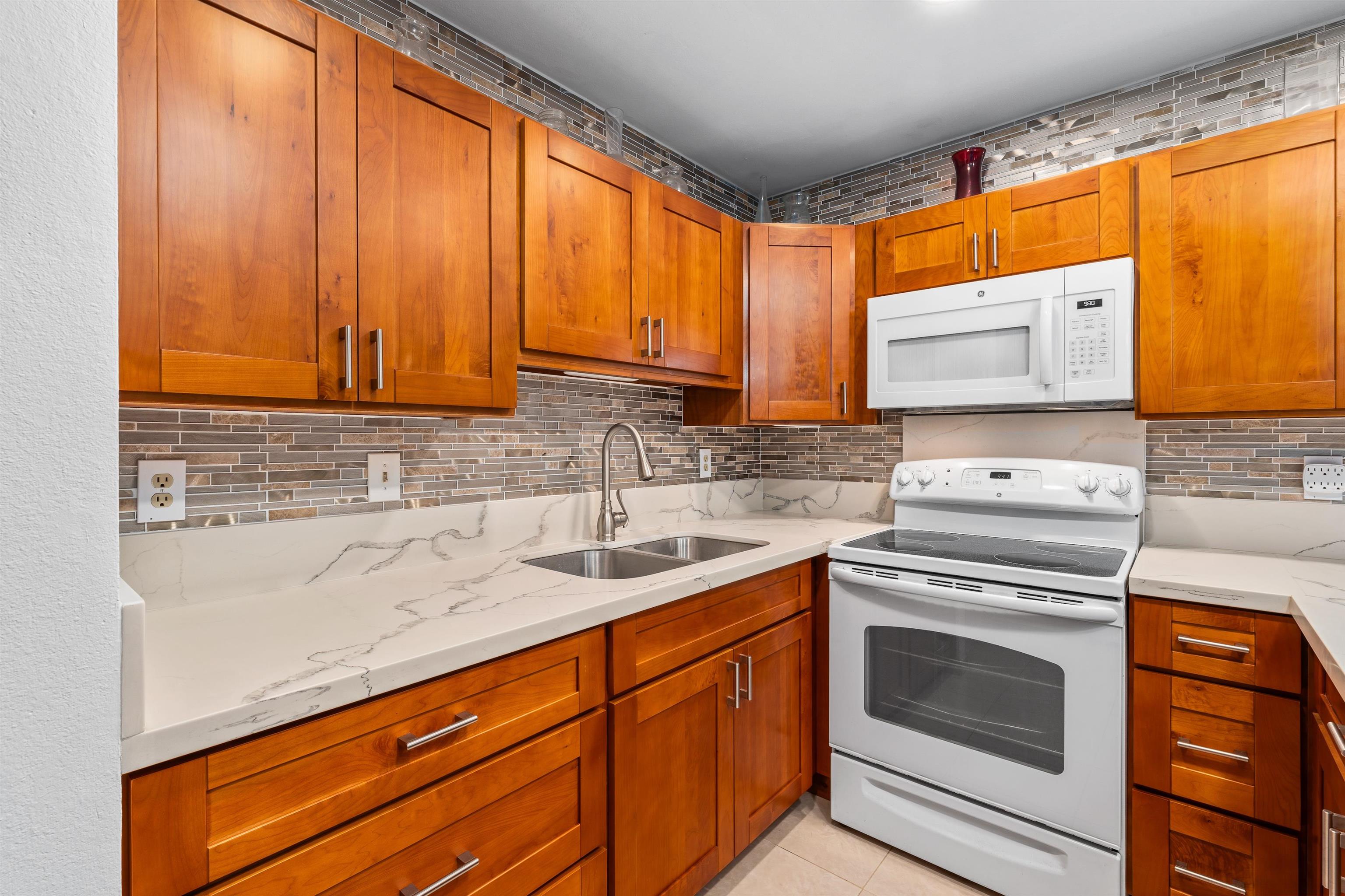 Find your next home at Maui Lani Terraces G102. This beautifully remodeled and upgraded 1-bedroom unit features wood cabinetry, white solid surface countertops, luxury vinyl plank flooring, and a walk-in tiled shower. Furnishings are included. Enjoy the convenient ground floor location and a private lanai. The complex has a swimming pool and is located just across the street from the ocean, close to the Kaanapali, Napili, and Kapalua resort areas and area beaches.