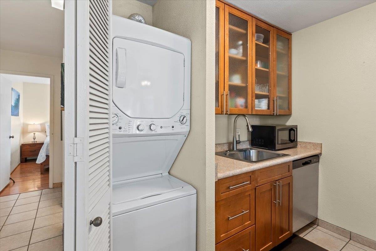Welcome to Maui Vista #1-301, a charming 1-bedroom, 1-bath condo with partial ocean views located on the third floor of the beautiful Maui Vista complex in South Kihei. This well maintained property is nestled on nearly 9 acres of lush, tropical gardens, offering a serene island retreat. Maui Vista is perfectly situated right across the street from Charlie Young/Kamaole I Beach, one of Maui's finest white sand beaches, making it perfect for swimming, snorkeling, or simply relaxing by the ocean. The complex boasts a variety of amenities, including three swimming pools, six tennis courts, and newly striped pickleball courts for active recreation. Enjoy outdoor barbecues with the propane gas BBQ areas available throughout the property. Inside the unit, you'll find a fully equipped kitchen, room-unit A/C in both the living room and bedroom. The condo comfortably sleeps four, with a queen bed in the bedroom and a queen sofa bed with a chaise lounge in the living area. For added convenience, there’s an in-unit washer and dryer. Maui Vista’s central location places you within walking distance of shops, restaurants, and all three Kamaole Beaches, Cove Park and Kalama Park. With elevator access, ample parking, and beautifully maintained grounds, this resort-like property offers the perfect combination of relaxation and activity, making it an excellent investment or vacation home. Don’t miss this opportunity to own a piece of paradise in South Kihei!