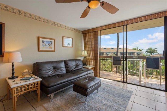 Pack your suitcase and enjoy this turnkey 1 bedroom, 1 bathroom ocean view condo at Maui Vista. The functional floor plan features a generous amount of cabinet storage and open concept kitchen with granite countertops. Experience the ocean view while your favorite meal is prepared from the kitchen and enjoy the fruits of your labor on the cozy lanai. The well thought-out design of the bedroom koa closets combines aesthetics and function. The theme of koa continues into the bathroom with a custom tiled shower. Recent updates include the window AC and on demand hot water heater. Charley Young Beach is across the street and is a spectacular beach to post up your beach chair for the day. Conveniently located near restaurants, grocery stores, golf courses, and Wailea/ Makena is a short drive away. Amenities include bbq areas, tennis courts, and pools! This condo is ready for you to call home and/ or utilize as a vacation rental.