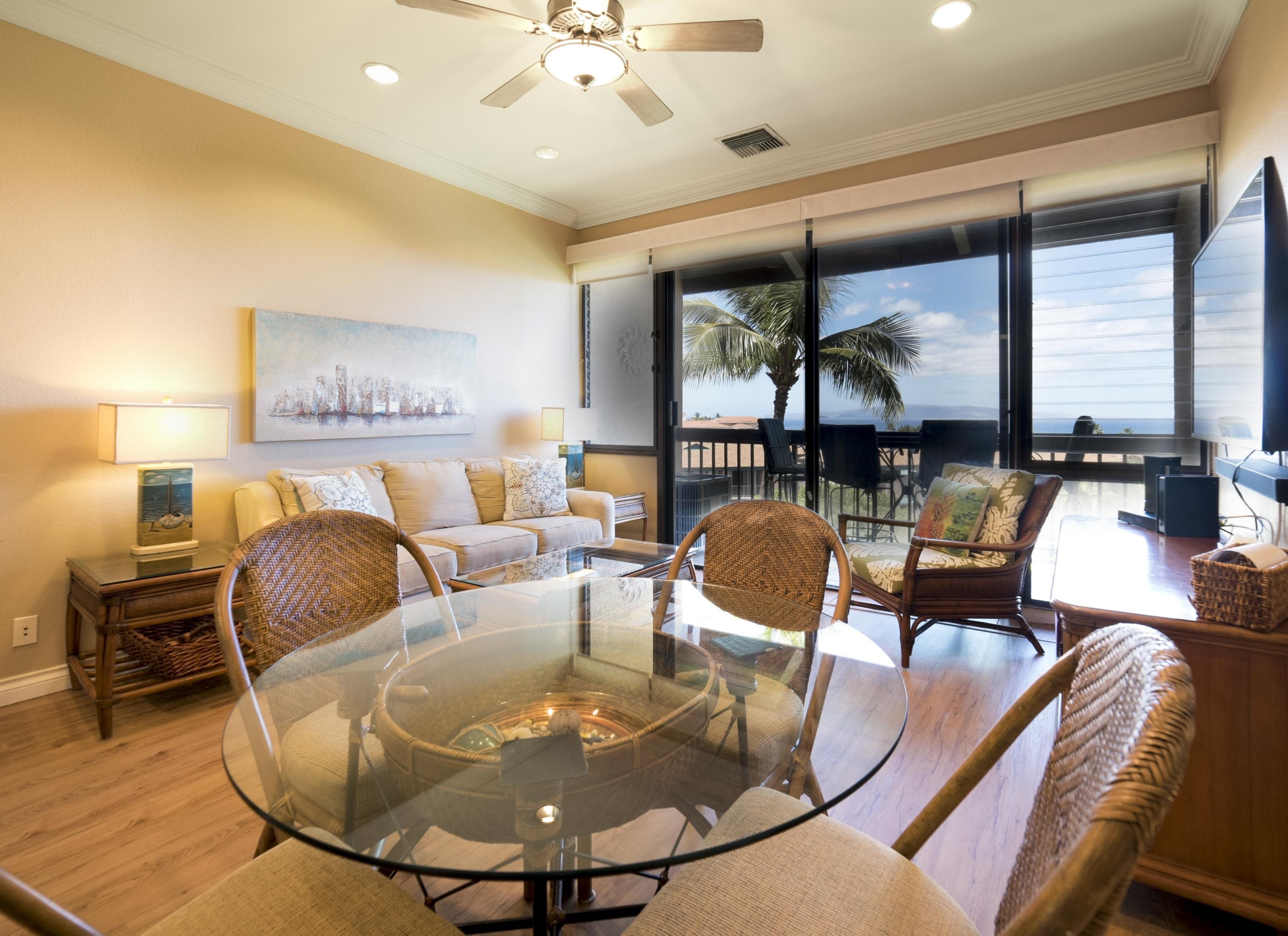 Welcome to your dream tropical paradise! This amazing 2 bedroom, 2 bathroom turnkey condo offers the perfect opportunity for short-term rental income while being a stunning getaway for you and your family. Bask in the glory of gorgeous sunsets right from your own living room or covered patio, as this unit boasts one of the best ocean views in the complex. As you step into this condo, you'll be greeted by newer appliances and recessed lighting in the kitchen, creating an inviting space for culinary delights. The tile flooring in the kitchen and bath adds a touch of elegance and makes for easy maintenance. Stay comfortable year-round with the central A/C, which was just replaced in 2022, ensuring your utmost comfort in all seasons. The unit's intelligent layout features an upstairs loft that has been converted into a full bedroom, providing ample space for family or guests. There is also a washer and dryer for your convenience and a large owner's closet of approximately 220 sqft, you'll have plenty of room for storage and personal belongings. Resort-like amenities await you within the complex, including not just one, but three pools to choose from, perfect for unwinding and enjoying the warm Hawaiian weather. Keep active and entertained with six tennis courts and a BBQ area, ideal for hosting gatherings and creating cherished memories. Conveniently located across from Kamaole 1 and Charley Young Beach, you'll have quick and easy access to the soft sands and sparkling waters off Maui's most renowned beaches. Whether you're a water enthusiast, a foodie, or a shopaholic, this condo is ideally situated close to local eateries, shopping centers, and a variety of beach activities. This unit has been tastefully updated with new hardwood floors downstairs, giving it a fresh and modern feel. Ceiling fans throughout the condo help to keep the island breeze flowing and create a comfortable ambiance. Don't miss the chance to own your own slice of paradise in this sought-after complex. Experience the ultimate Maui lifestyle with breathtaking ocean views, resort-style amenities, and the convenience of nearby attractions. Contact your favorite realtor TODAY to schedule a private showing and make this dream condo your very own!