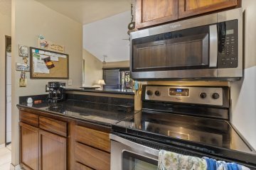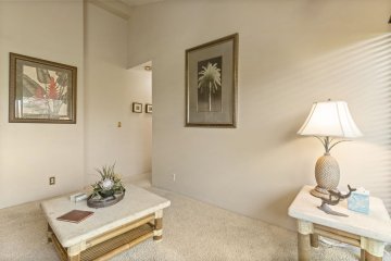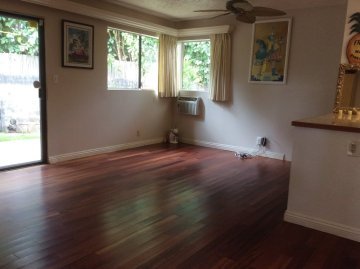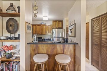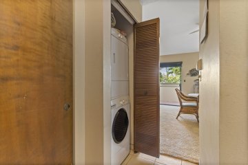 The intimate complex features six two-bedroom units in a two-story building with no elevators. Units range between 727 and 845 square feet. Those on the second floor feel spacious with vaulted ceilings and a lanai, which one unit fully enclosed for additional storage and living area. Condos on the first level have a private patio spacious enough for a grill.