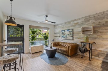 The cozy complex features one two-story concrete building without elevators. All units are 410 square feet and feature a window air conditioning unit in the bedroom. While there are no ocean views, the condos offer vistas of the mountains or lush gardens.