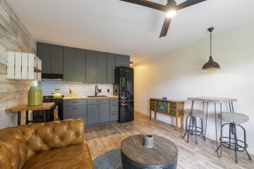 Although modest, the gardens are well-kept and surrounded by tropical plants for a sense of serenity. There is a bike rack and communal barbecue area with one grill and table for residents to enjoy. A laundry facility is located on the first floor.
