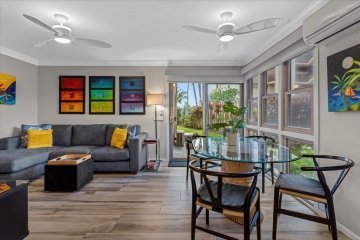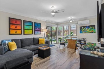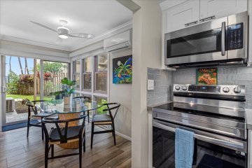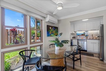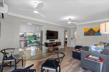 The complex houses 29 one- and two-bedroom units ranging from 604 to 875 square feet spread across two two-story buildings without elevators. The two-bedroom condos feature a townhouse design, boasting vaulted ceilings along with a lofted second bedroom and bathroom, while the one-bedrooms are single-level. Every unit has a lanai and many have been upgraded with split air conditioning. There are shared laundry facilities on both floors.