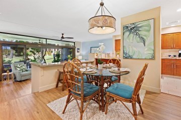 All condos have sunken living rooms with the main lanai attached. Many have a view of the ocean out across the golf course behind the community. Central air conditioning is in every residence and residents are allotted at least one unassigned stall in the parking lot.